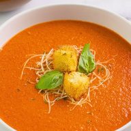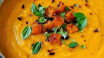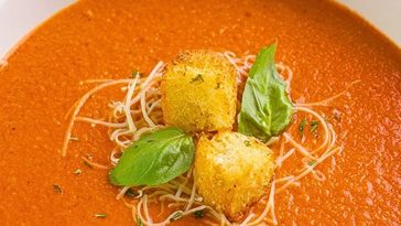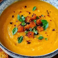 Spicy Pumpkin Soup with Grilled Cheese Croutons