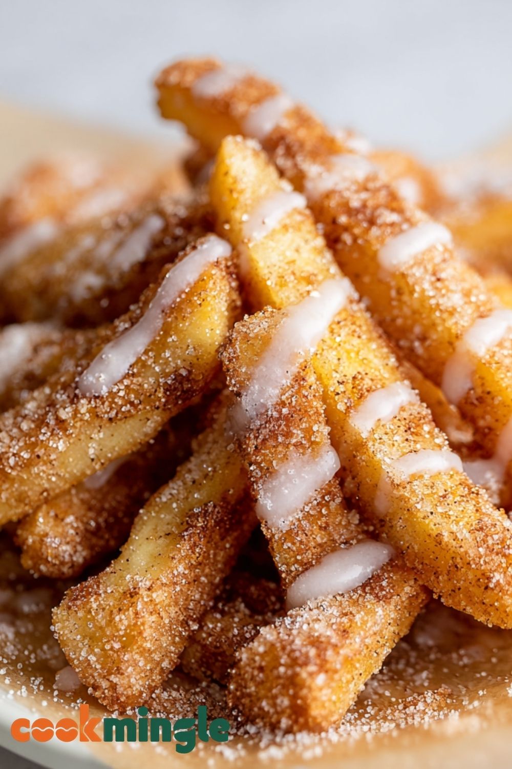 Whisk together powdered sugar, milk, and vanilla extract to create a smooth glaze. Drizzle over the warm apple fries for an extra touch of sweetness and presentation.