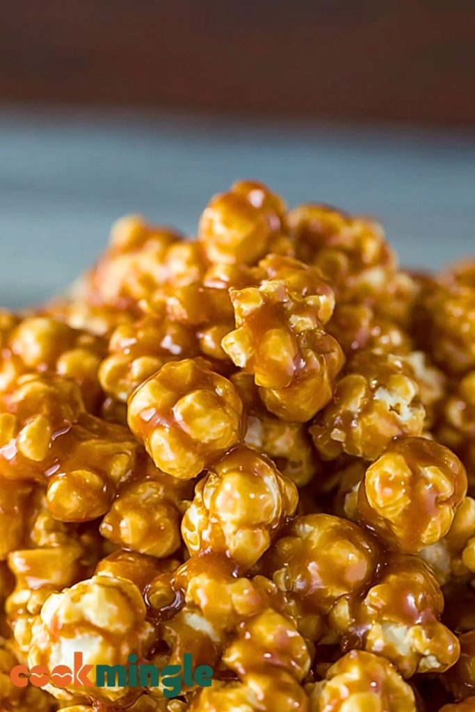 Use freshly popped popcorn without any butter or salt — air-popped or stovetop is best. When making the caramel, avoid high heat; go slow to prevent burning the sugar or curdling the butter. Once the caramel is poured over the popcorn, stir quickly and thoroughly to coat everything before it starts to harden. Baking the popcorn after coating it is the key step — it lets the caramel set into a crisp shell, rather than staying chewy or tacky. Stir the popcorn every 15 minutes while baking for even coating and consistent crunch.