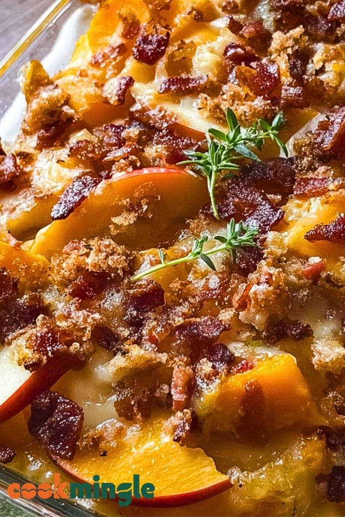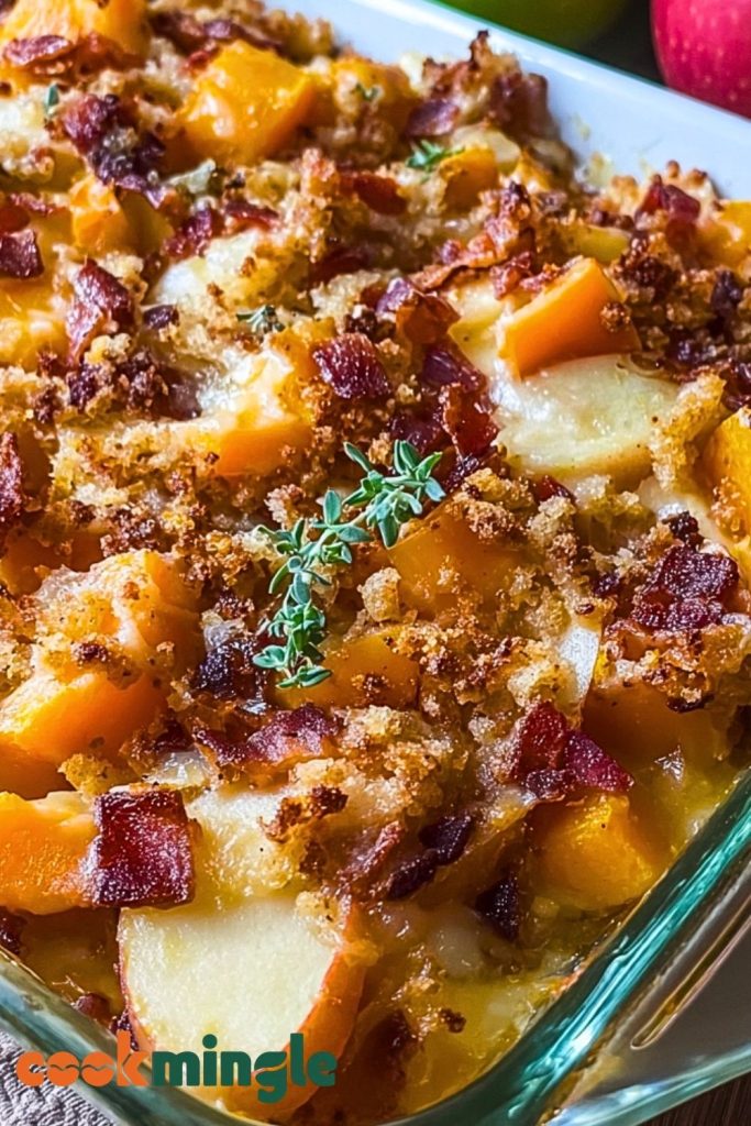 This Apple Butternut Squash Casserole is highly adaptable. You can easily make it vegetarian by omitting the bacon and using a touch of smoked paprika for depth. If you prefer a sweeter finish, drizzle a tablespoon of maple syrup over the assembled casserole before baking. Feel free to experiment with cheeses like Gruyère or goat cheese for a more sophisticated flavor. It also pairs wonderfully with roasted chicken or turkey, making it ideal for fall dinners or holiday feasts.
