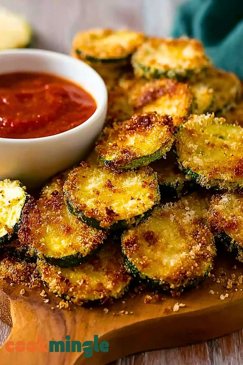 Pat zucchini slices dry before coating to avoid sogginess.