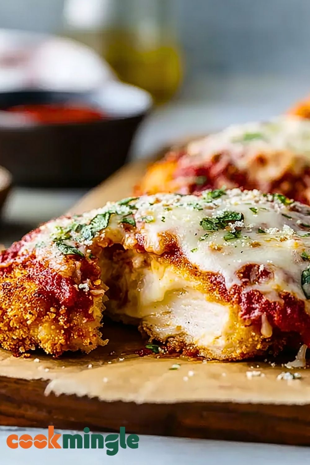 You can swap the chicken breasts for boneless, skinless chicken thighs if you prefer dark meat—the result will be a juicier, richer flavor. Gluten-free breadcrumbs can be used if you want to make this recipe gluten-free. For a dairy-free version, try vegan mozzarella and skip the Parmesan. You can also make this recipe lighter by baking the chicken instead of pan-frying it—just drizzle a little oil on the breaded cutlets before baking for a crispy finish.