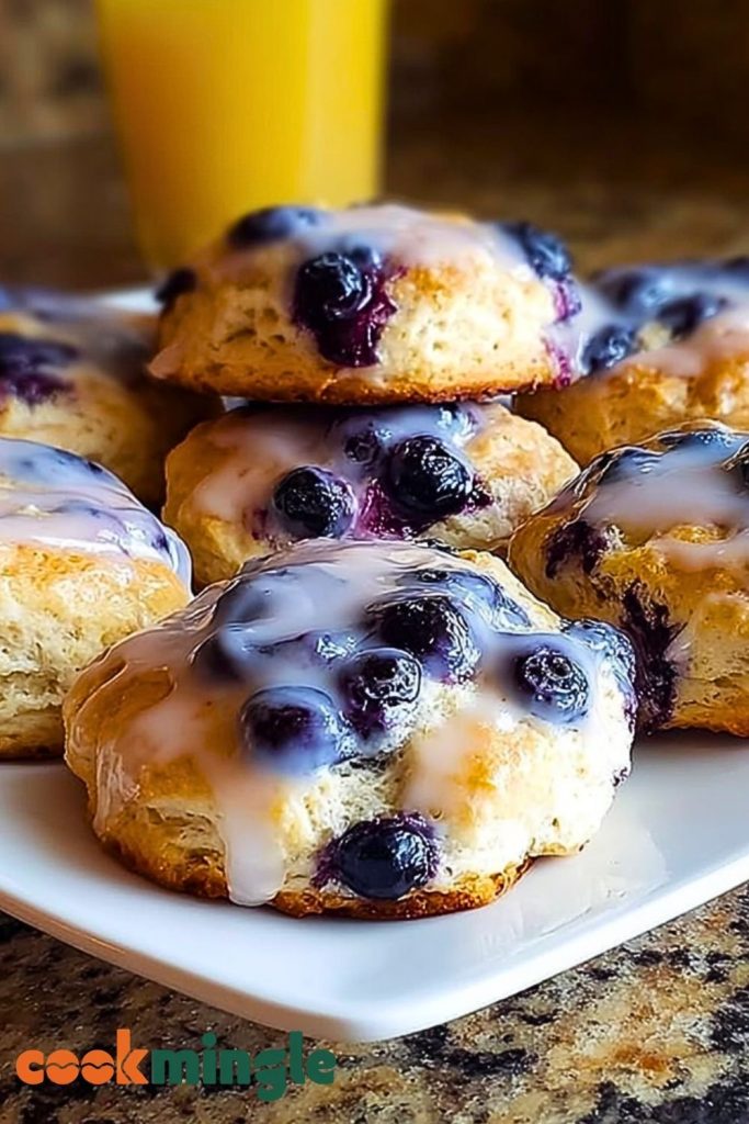 Biting into one of these warm blueberry biscuits is pure breakfast magic. The biscuit itself is golden and tender, slightly crisp on the outside and soft on the inside, with juicy blueberries baked right in. And just when you think it can’t get any better, a simple vanilla glaze drizzled on top adds the perfect amount of sweetness. These biscuits aren’t just a side—they’re the star of any morning table.
