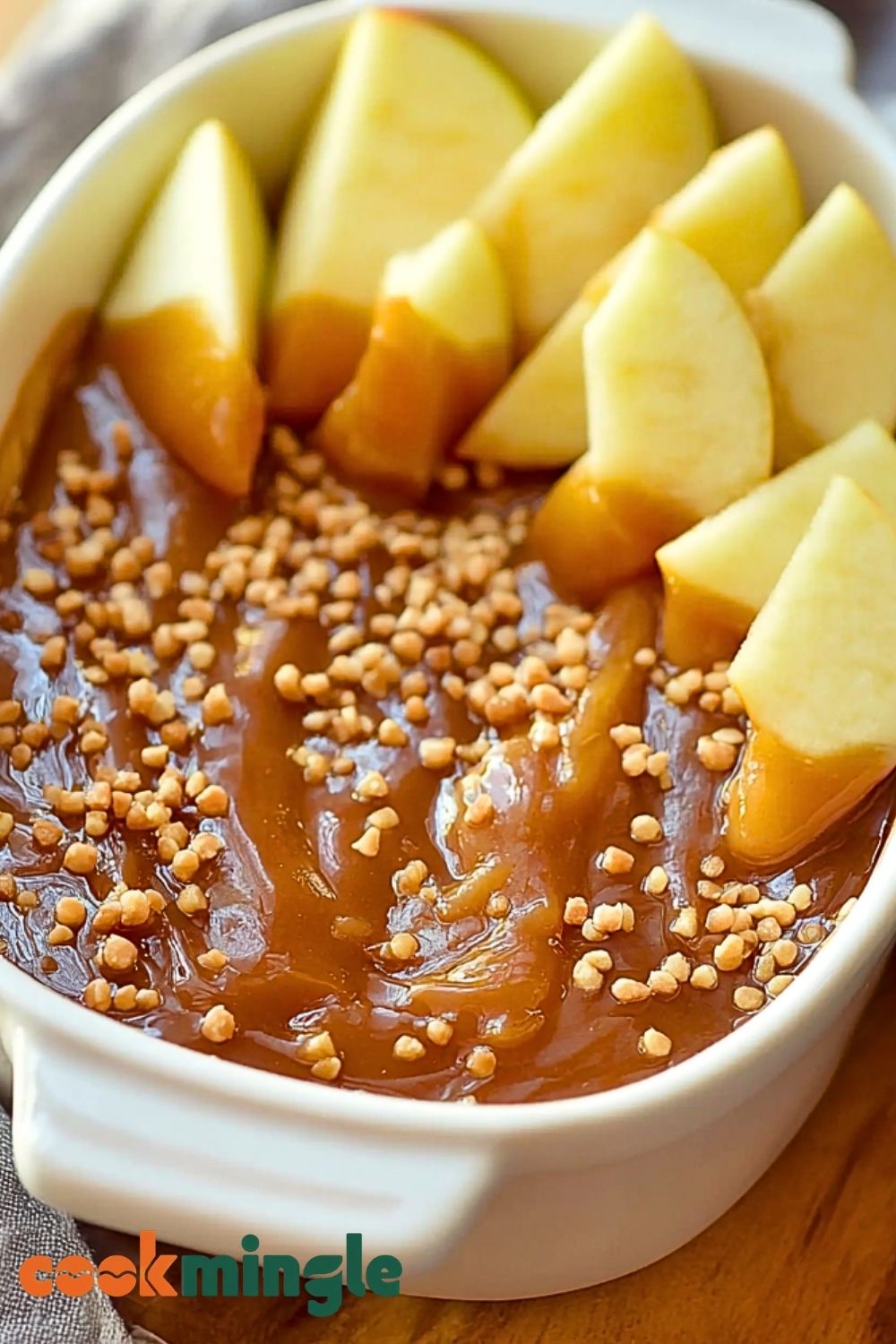 Sprinkle the toffee bits over the top of the caramel layer. They’ll add texture and that signature toffee crunch that makes this dip unforgettable.