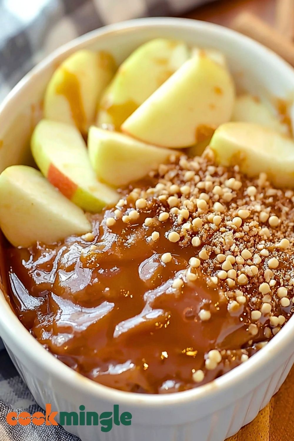 - If making ahead, assemble the dip but wait to slice apples until just before serving.
