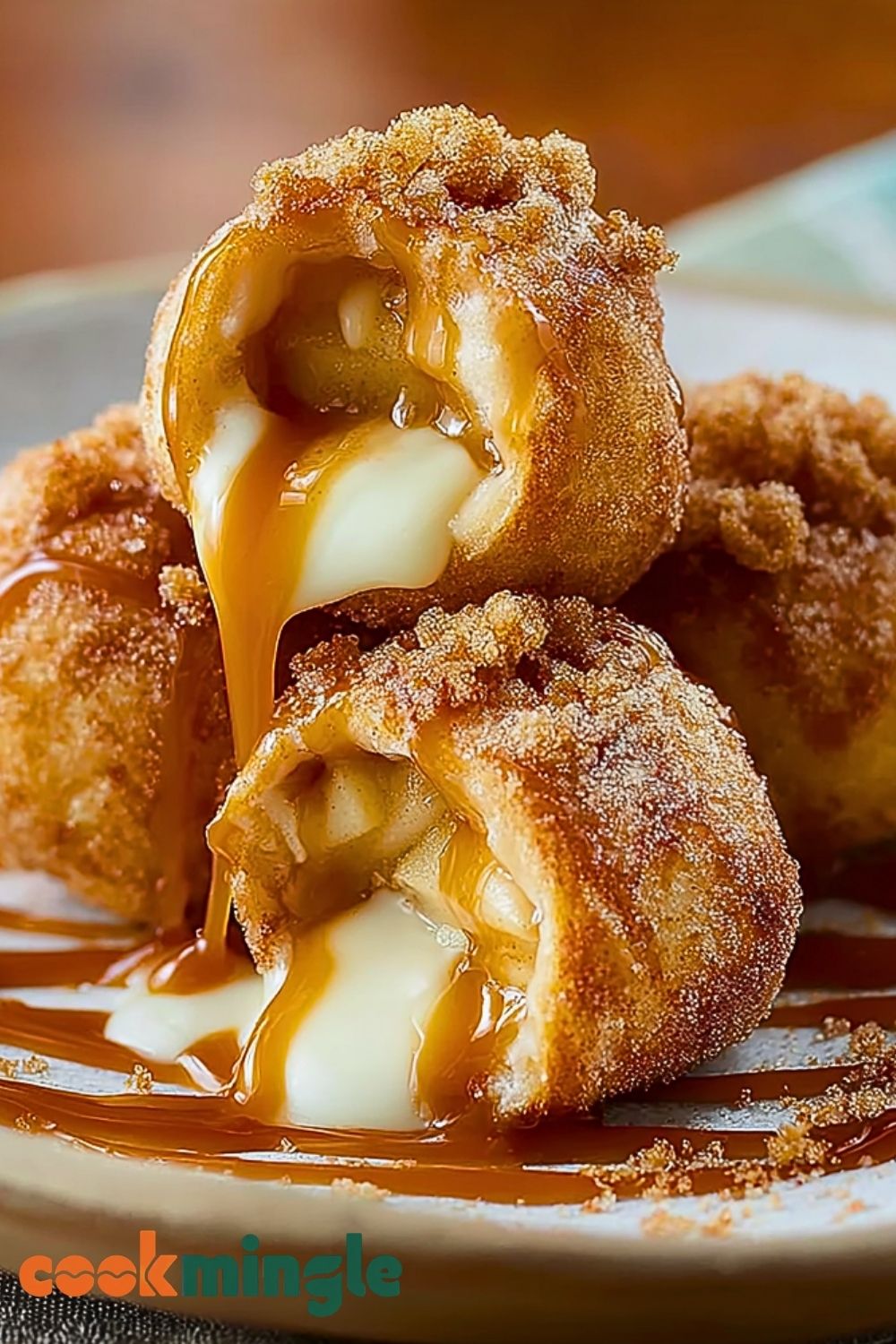 Cooking Time: If baking, you’ll need 12–15 minutes in the oven. If frying, it’s quicker—around 2–3 minutes per side. Add 5 more minutes to roll them in cinnamon sugar and drizzle with caramel. So altogether, you can have these ready in just under 30–35 minutes from start to finish.