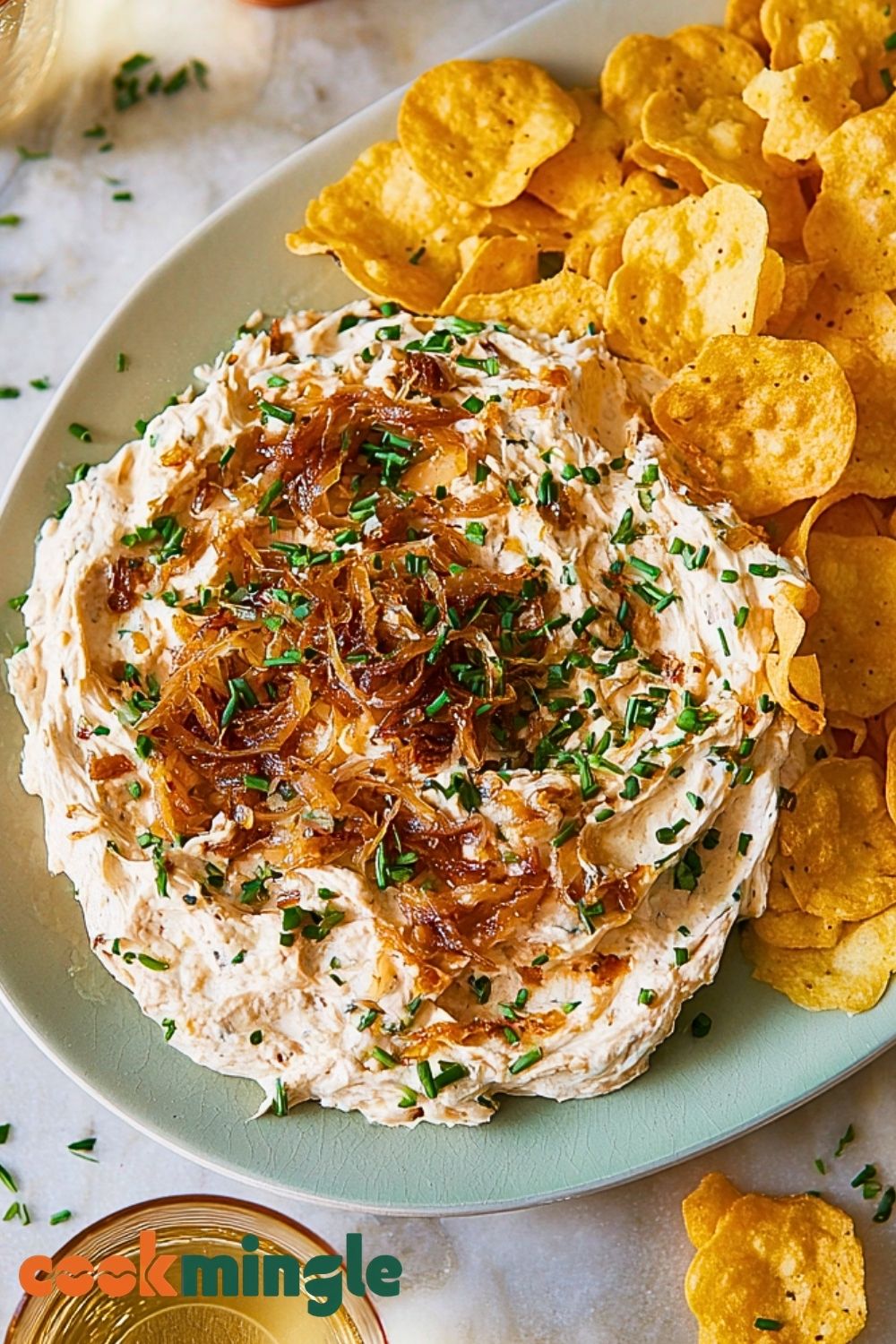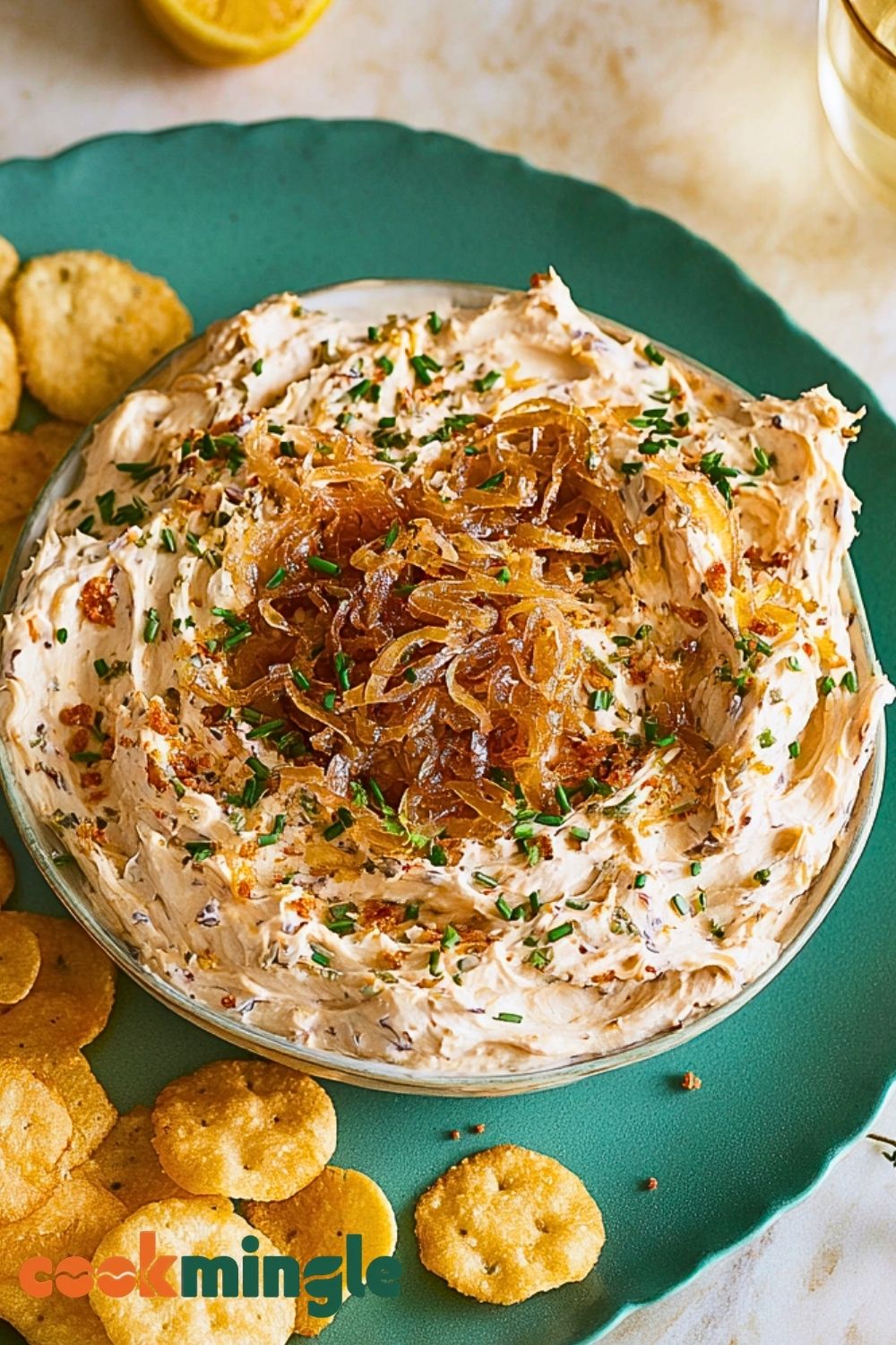 Caramelizing onions takes patience—plan for 35 to 45 minutes of slow cooking to bring out their deep, sweet flavor. After that, a short cooling time and mixing everything together takes another 10-15 minutes. For best results, chill the dip for at least 1 hour before serving, though overnight is even better.