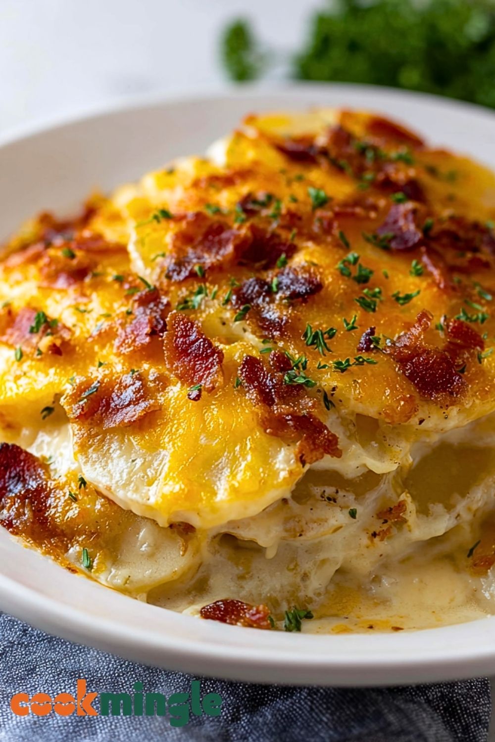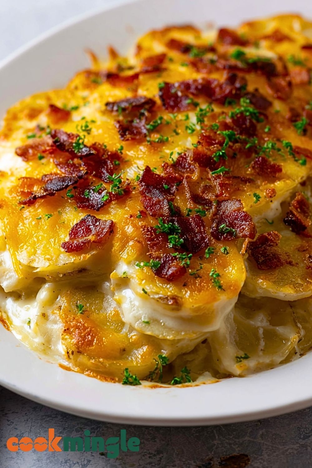This dish is the perfect blend of creamy, cheesy, and savory. It’s comforting without being too heavy, and the crispy bacon on top adds the perfect touch of saltiness. Whether you’re hosting guests or just want something indulgent on a cold evening, these potatoes are sure to be a hit. Best of all, they’re surprisingly simple to make—you just need the right layering technique and a bit of oven time.