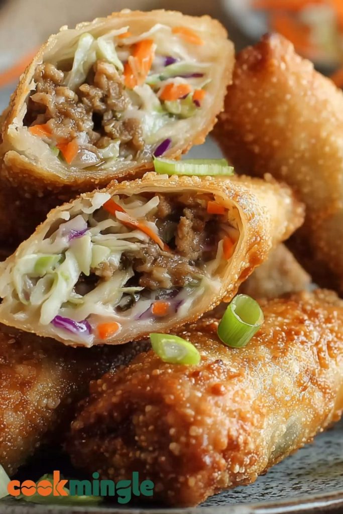 8. To Air Fry: Preheat to 390°F (200°C). Lightly spray egg rolls with oil and air fry for 8–10 minutes, flipping halfway.