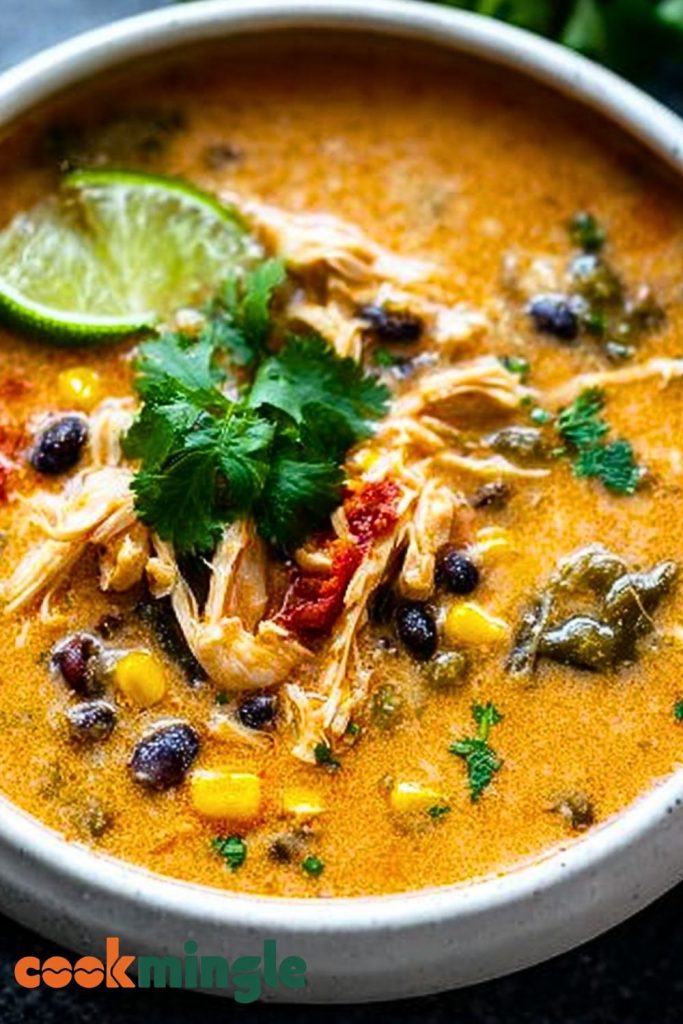 Keywords: chicken poblano soup, creamy black bean soup, easy dinner idea, healthy comfort food