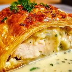 Golden, flaky puff pastry wrapped around juicy, tender chicken breast and smothered in a rich, creamy sauce—this Chicken Wellington is my go-to dish when I want something show-stopping but surprisingly easy to pull off. The moment you cut into that buttery crust and steam rises from the savory filling, it becomes clear this isn’t your average chicken dinner. I’ve made this dish for dinner parties, romantic date nights, and even quiet Sunday meals—it never fails to impress.