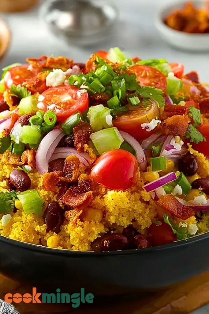 Prep Time: Preparing this salad typically takes about 30 minutes. This includes chopping the vegetables, cooking the bacon, and rinsing the beans. If you’ve already baked the cornbread in advance, it’s just a matter of assembling everything.