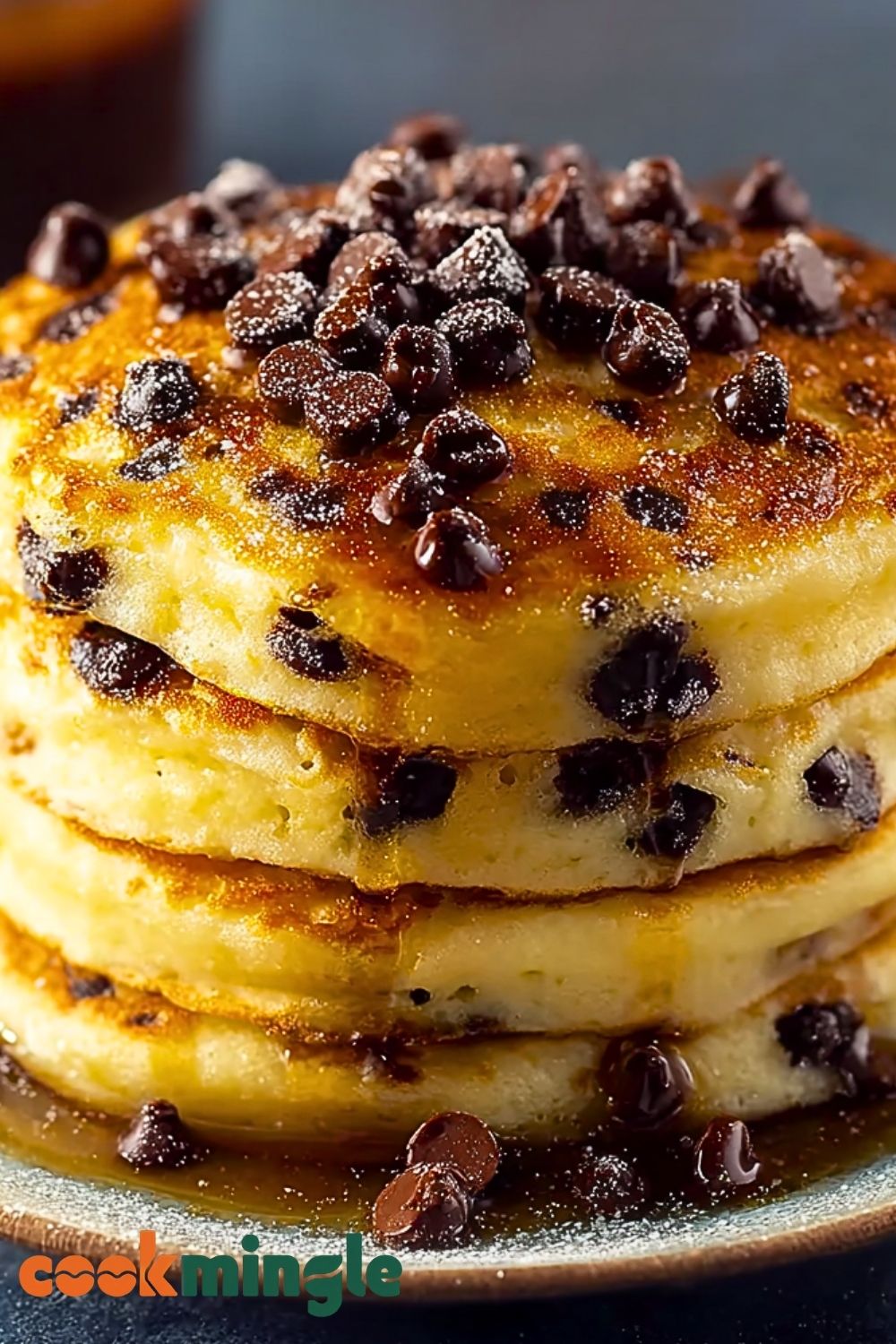 For the fluffiest pancakes, avoid overmixing the batter — a few lumps are okay. Let the batter rest for 5–10 minutes before cooking to allow the baking powder to activate and create lift. Use mini chocolate chips for better distribution and less sinking, and make sure the skillet is properly preheated before pouring the batter. Lightly grease your pan between batches to maintain that golden crisp exterior without excess oil. And for extra decadence, press a few chocolate chips into the top of each pancake right after ladling the batter onto the pan.