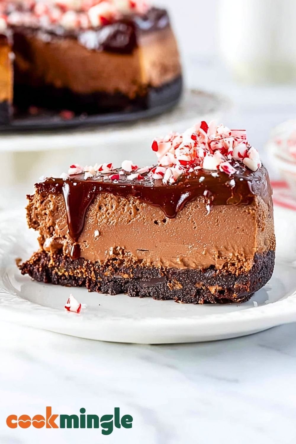 Let your cream cheese come to room temperature before mixing—this ensures a silky smooth filling without lumps. When baking the crust, just a short pre-bake helps it set without getting soggy under the filling. After baking the cheesecake, allow it to cool gradually to prevent cracking, and refrigerate it for at least 4 hours (preferably overnight) before adding the ganache. Finally, crush peppermint candies just before serving to keep them crisp and vibrant on top.