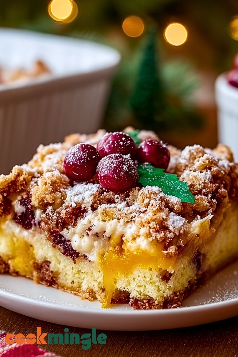 This cake is pure joy in dessert form. It’s festive, colorful, and full of texture—from the soft, fluffy base to the golden, crumbly topping. It’s the kind of dessert that brings people back for seconds (and thirds). The balance of sweet and tart from the cranberries keeps it from being overly sugary, and that makes it a hit with both kids and adults. Plus, it’s versatile enough to be served warm with a scoop of ice cream or cooled with a dusting of powdered sugar.