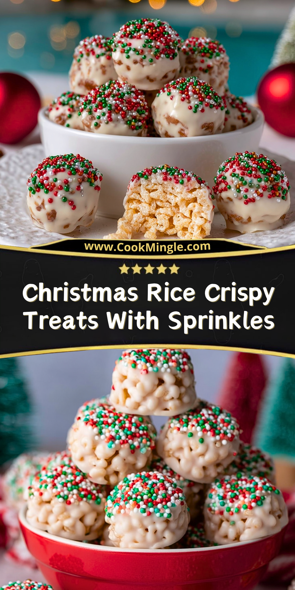 Make your holiday extra merry with these Christmas Rice Crispy Treats With Sprinkles! This festive no-bake dessert is a sweet, chewy twist on the classic rice crispy treat—dipped in white chocolate and topped with red, green, and white sprinkles. Perfect for a quick Christmas dessert, edible gift idea, or holiday party snack. It’s an easy recipe that delivers big on fun and flavor, ideal for anyone looking for simple yet crowd-pleasing food ideas. Whether you’re searching for quick breakfast treats for kids or creative snack options for festive gatherings, this recipe fits the bill.