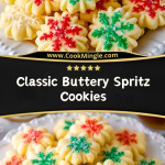 Classic Buttery Spritz Cookies are more than just a holiday staple—they’re a celebration of tradition, creativity, and that unmistakable buttery goodness. Whether you’re filling a festive cookie tray, creating handmade gifts, or starting a new baking tradition with family, these cookies never disappoint. With just a handful of pantry ingredients and a cookie press, you can create beautifully shaped, irresistibly tasty treats that capture the joy of the season. Happy baking!
