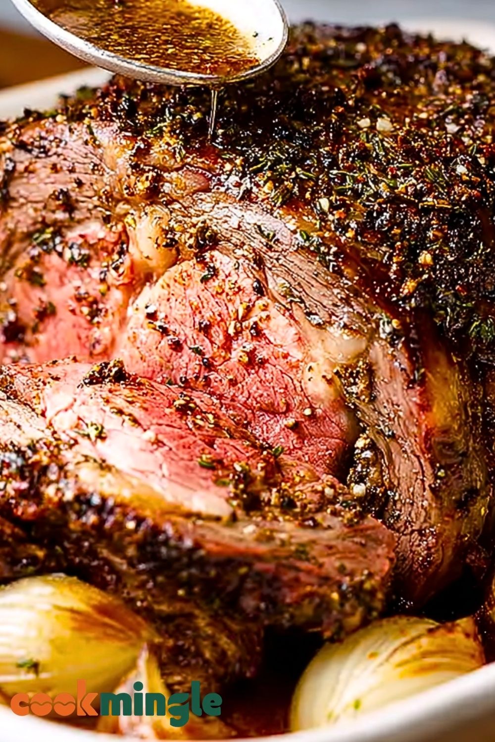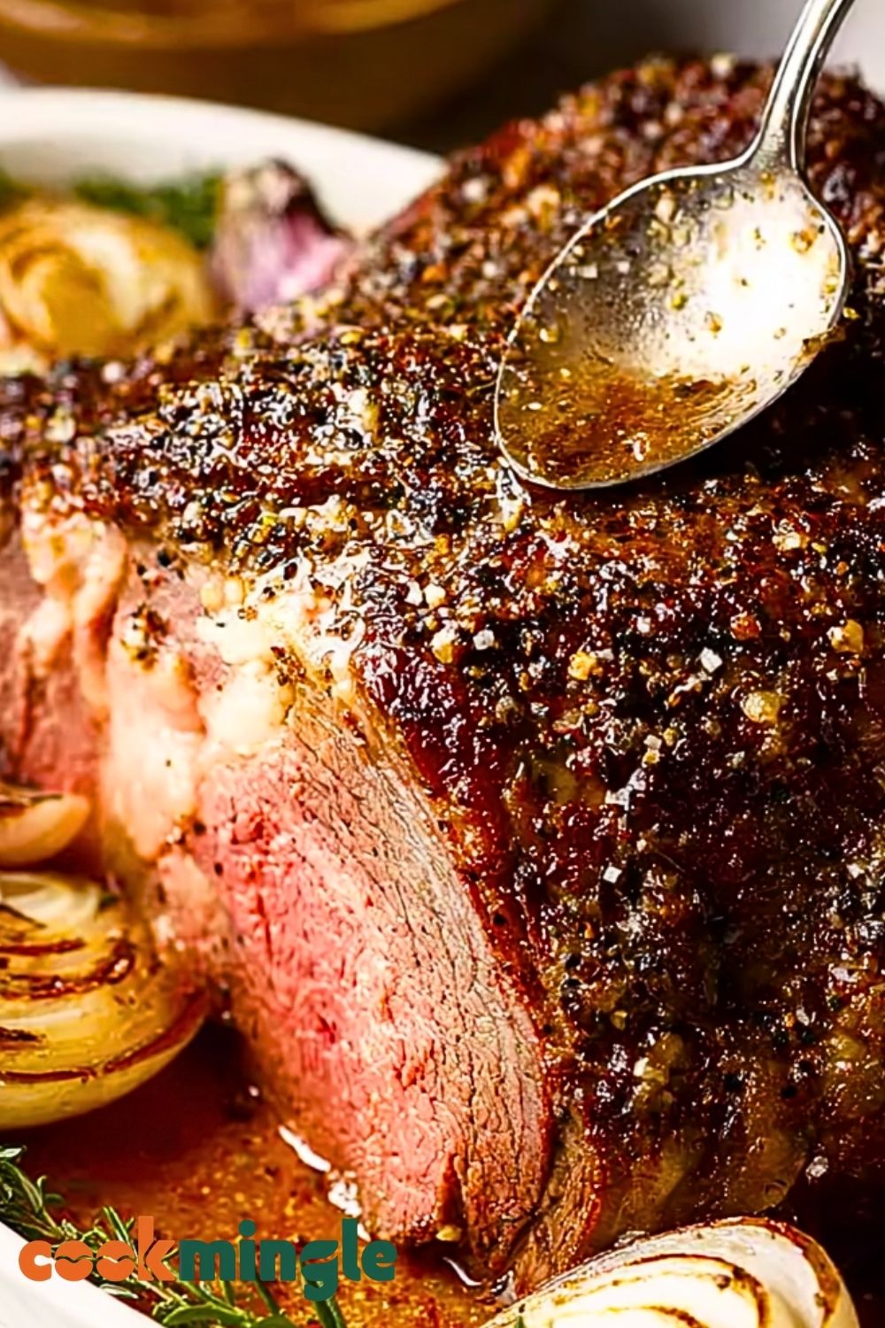 Bring the roast to room temperature before cooking—it helps with even cooking throughout. Generously season the roast with kosher salt, cracked black pepper, and minced garlic several hours in advance or overnight. This dry brine enhances flavor and tenderness. Don’t skip the resting period after roasting; it allows the juices to redistribute and ensures every slice is moist and flavorful. Lastly, avoid overcooking—prime rib is best served medium-rare to medium for the ideal texture and taste.