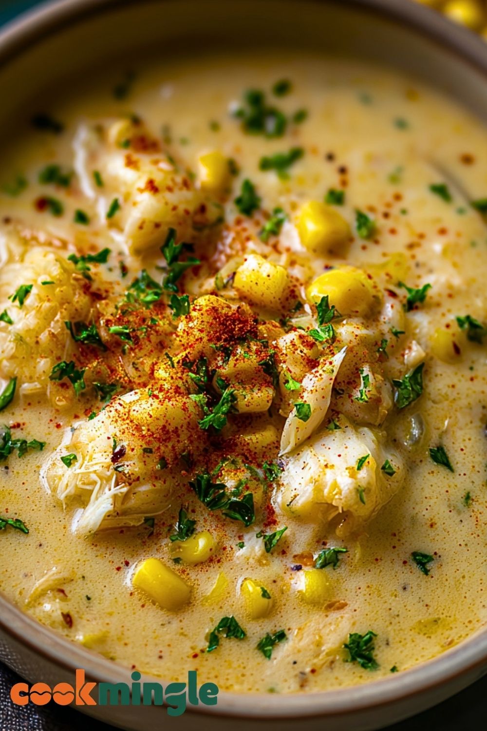 Use fresh crab meat if available—the flavor is unparalleled compared to canned or imitation varieties. If you’re using frozen corn, thaw it beforehand for even cooking. Sautéing your onions, garlic, and bell peppers in butter first adds a depth of flavor that builds the base for the entire chowder. For a thicker chowder, you can mash a few of the corn kernels or add a touch of flour before adding the liquids. Don’t rush the simmering process; letting the flavors meld for 20-30 minutes makes all the difference. Finally, garnish with fresh parsley or chives and a dash of paprika for color and a pop of freshness.