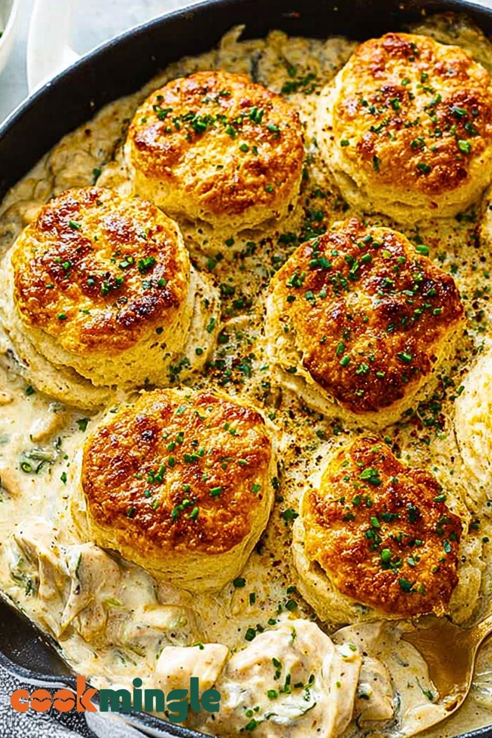 This dish is the ultimate comfort food — creamy, savory, and satisfying. It’s perfect for weeknights because it comes together in a single skillet, and you can use shortcuts like rotisserie chicken or pre-made biscuits to save time. The rich, herbed sauce pairs beautifully with the fluffy, golden biscuit topping, and the whole thing feels like a big dose of home-cooked love.