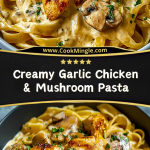 Creamy Garlic Chicken & Mushroom Pasta is the ultimate comfort food made easy. This quick dinner idea combines tender seared chicken, savory mushrooms, and a rich, velvety garlic cream sauce—all tossed with fettuccine for a meal that feels gourmet but comes together in under 40 minutes. Whether you’re looking for easy weeknight meals, hearty pasta recipes, or simple food ideas to impress guests, this dish checks every box. It’s perfect for cozy nights, family dinners, or when you want something indulgent without much fuss. Try this easy recipe once, and it might just become your favorite creamy pasta dish.