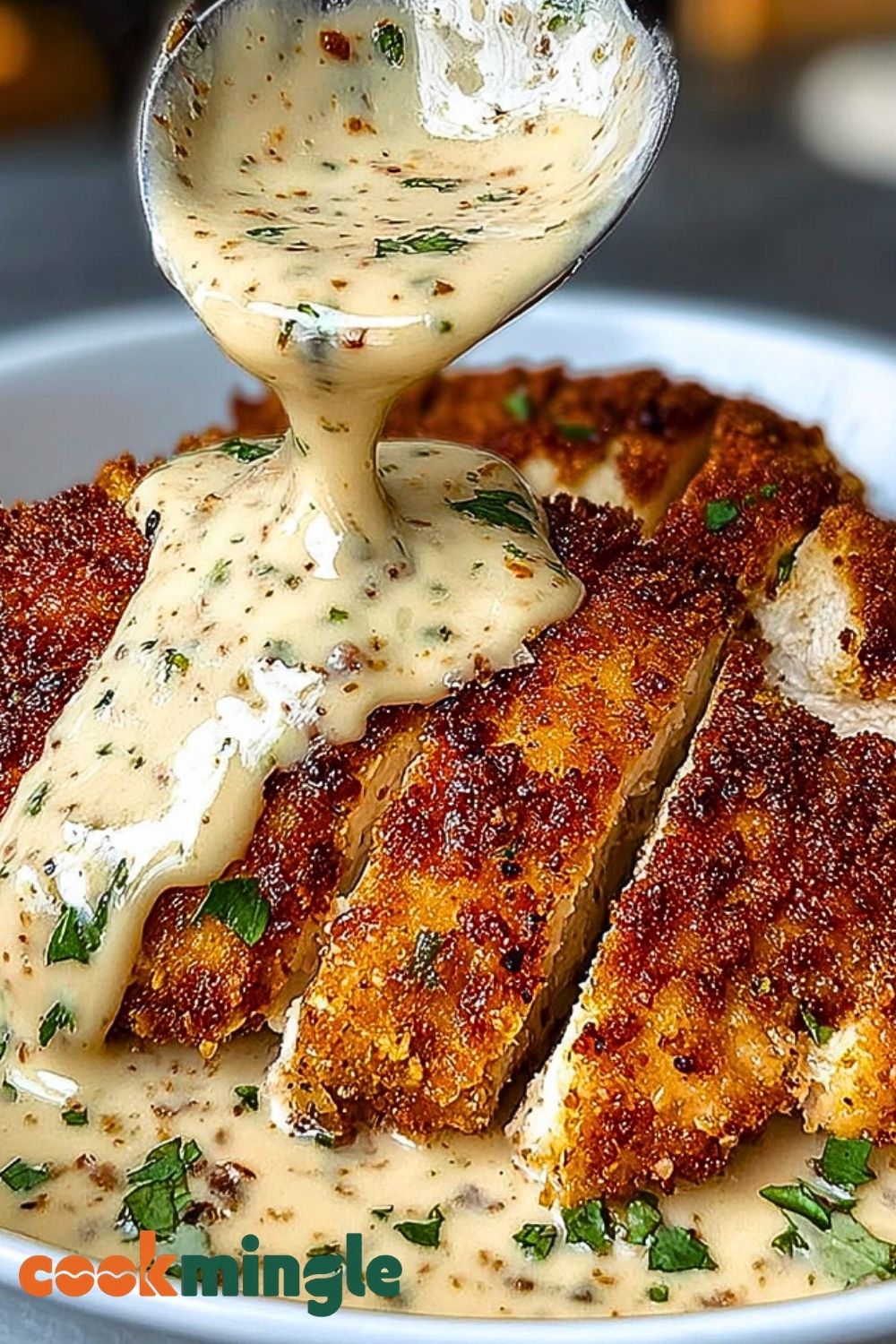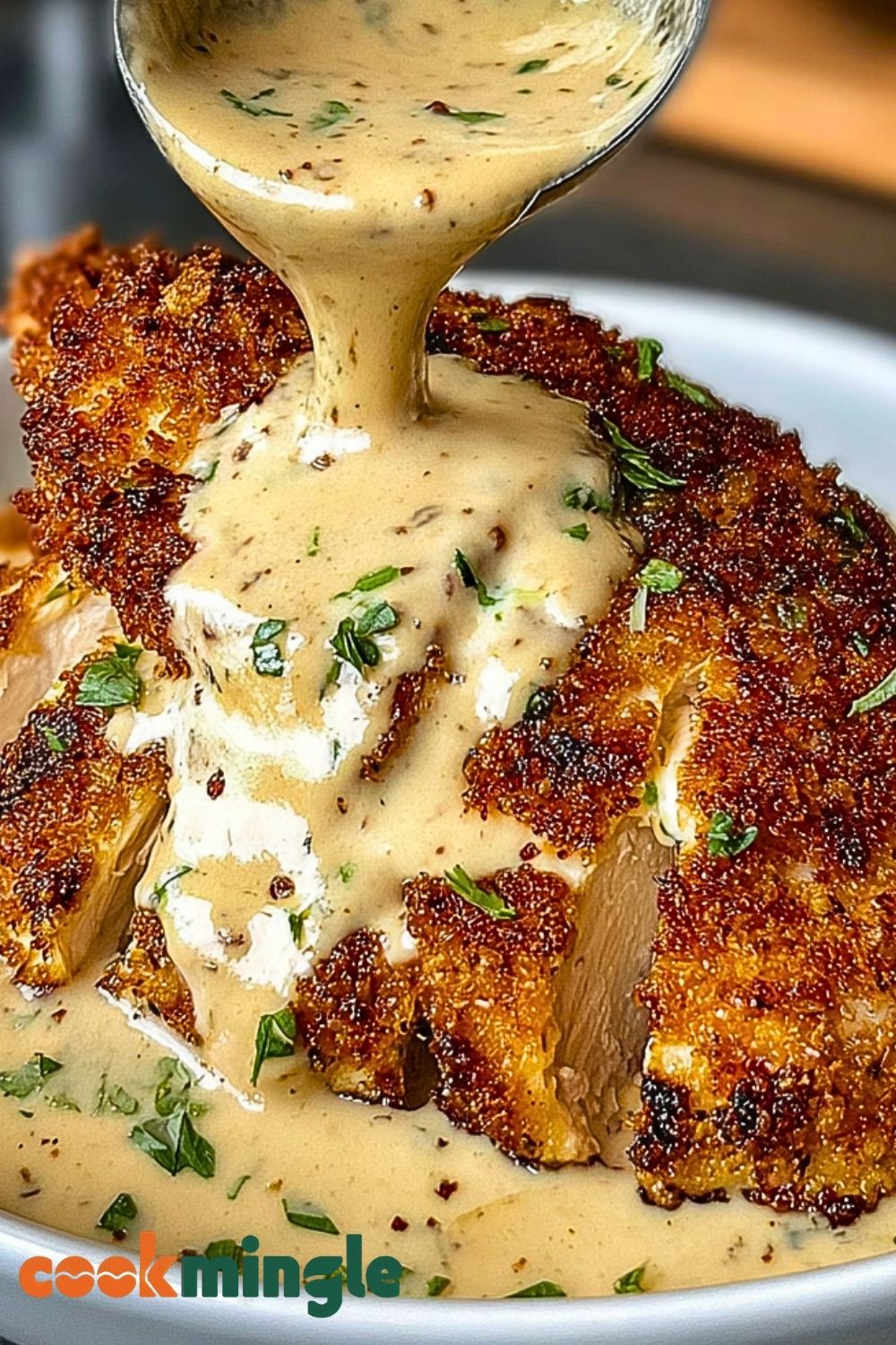Store any leftovers in an airtight container in the refrigerator for up to 3 days. To reheat, place the chicken on a baking sheet and warm it in a 350°F (175°C) oven for 10–15 minutes to maintain its crispiness. Reheat the sauce separately over low heat, adding a splash of cream or milk to bring back its creamy consistency. Freezing is not recommended as the sauce may separate and the crust will lose its crunch.
