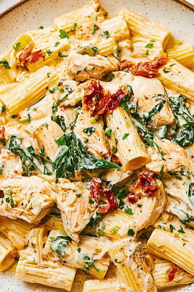 There’s something undeniably comforting about a big bowl of pasta, especially when it’s coated in a velvety cream sauce and loaded with bold, sun-dried tomato flavor. That’s exactly what drew me to this Creamy Tuscan Chicken Pasta. It’s a dish that feels indulgent but is surprisingly easy to whip up on a weeknight. From the very first bite, the combination of tender chicken, garlic-infused cream, and perfectly cooked rigatoni hooked me—and now it’s a regular part of my dinner rotation.