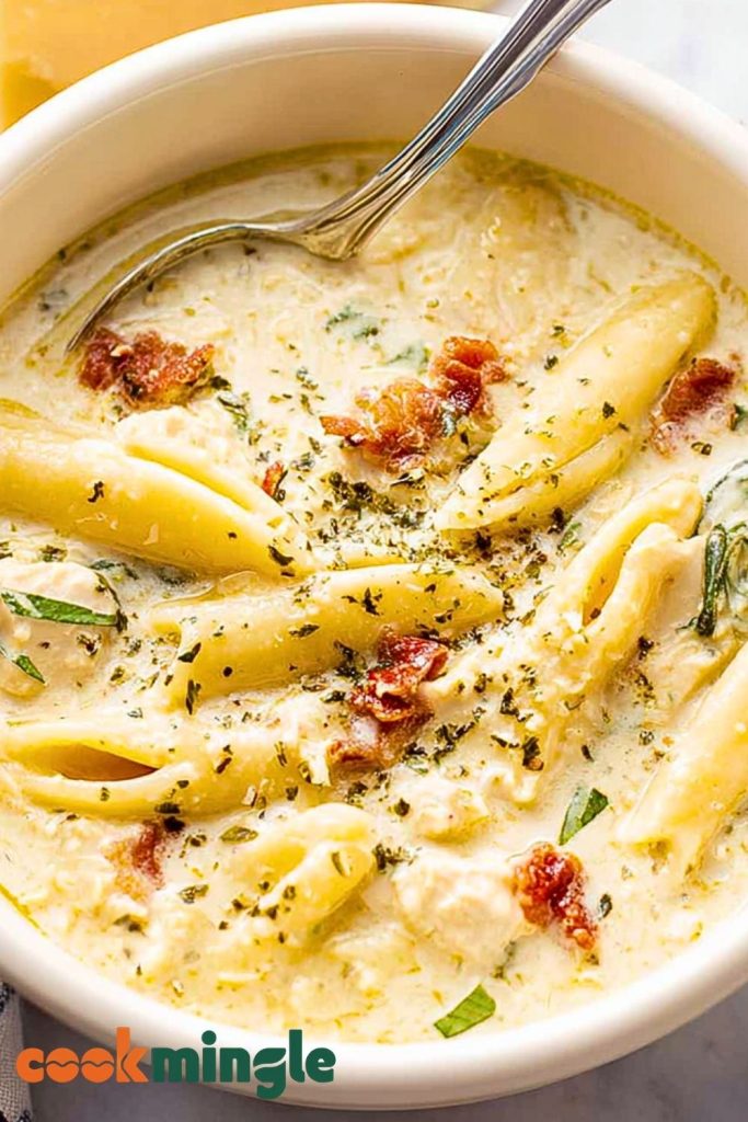 Use rotisserie chicken or leftover cooked chicken to cut down your prep time significantly. If using dry lasagna noodles, break them into bite-sized pieces before adding to the pot—they’ll cook directly in the soup and absorb all the flavors. Don’t skip the sun-dried tomatoes; they add a tangy depth that elevates the creamy broth. Keep an eye on the pasta as it cooks to prevent over-softening, and stir occasionally to keep noodles from sticking. For an extra smooth texture, add the cream slowly at the end and stir constantly.