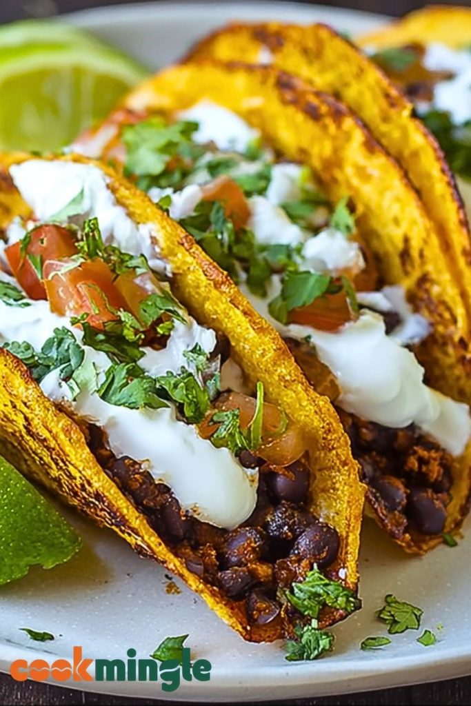 Craving a quick dinner idea that’s crispy, creamy, and packed with flavor? These Crispy Black Bean Tacos are a perfect weeknight option made with simple pantry staples. Filled with seasoned mashed black beans, melted cheese, and topped with fresh cilantro and crema, they’re a vegetarian delight you can whip up in 30 minutes. Whether you’re looking for an easy recipe, healthy snack, or satisfying food idea, these tacos deliver every time. Ideal for quick lunches, dinner ideas, or party appetizers!