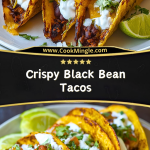Craving a quick dinner idea that’s crispy, creamy, and packed with flavor? These Crispy Black Bean Tacos are a perfect weeknight option made with simple pantry staples. Filled with seasoned mashed black beans, melted cheese, and topped with fresh cilantro and crema, they’re a vegetarian delight you can whip up in 30 minutes. Whether you’re looking for an easy recipe, healthy snack, or satisfying food idea, these tacos deliver every time. Ideal for quick lunches, dinner ideas, or party appetizers!
