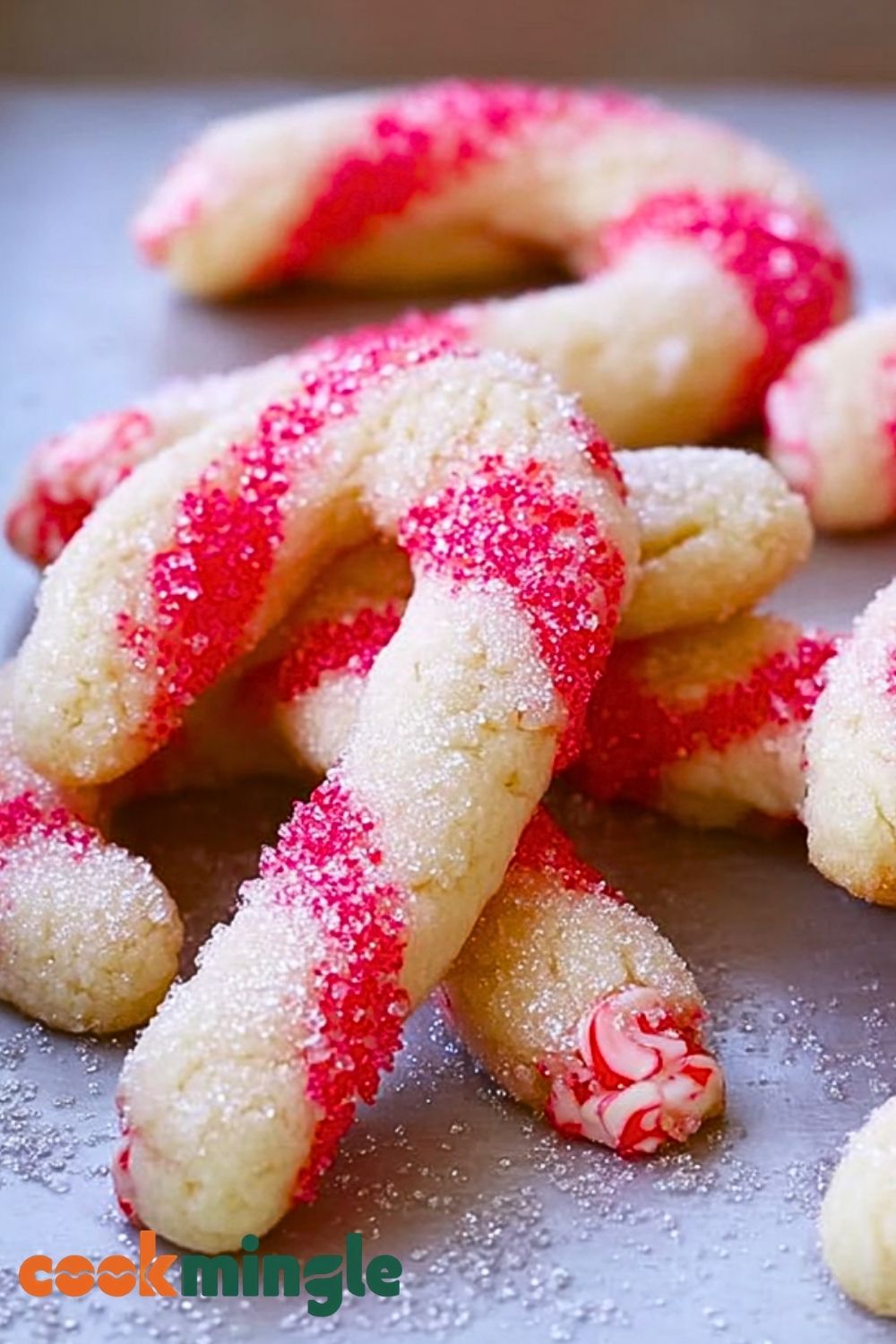 Crispy Candy Cane Cookies can be stored in an airtight container at room temperature for up to 1 week. For longer storage, they can be frozen—place in a single layer on a baking sheet to freeze, then transfer to a freezer-safe bag. Thaw at room temperature before serving. Avoid refrigerating, as it can affect texture.
