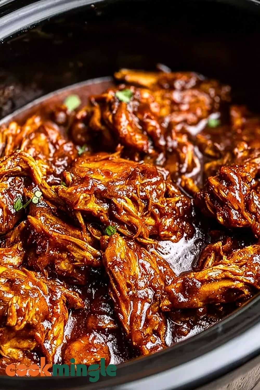 Once cooked, remove the chicken and shred it using two forks. Return the shredded chicken to the crockpot and mix it into the sauce so it absorbs all the flavors.