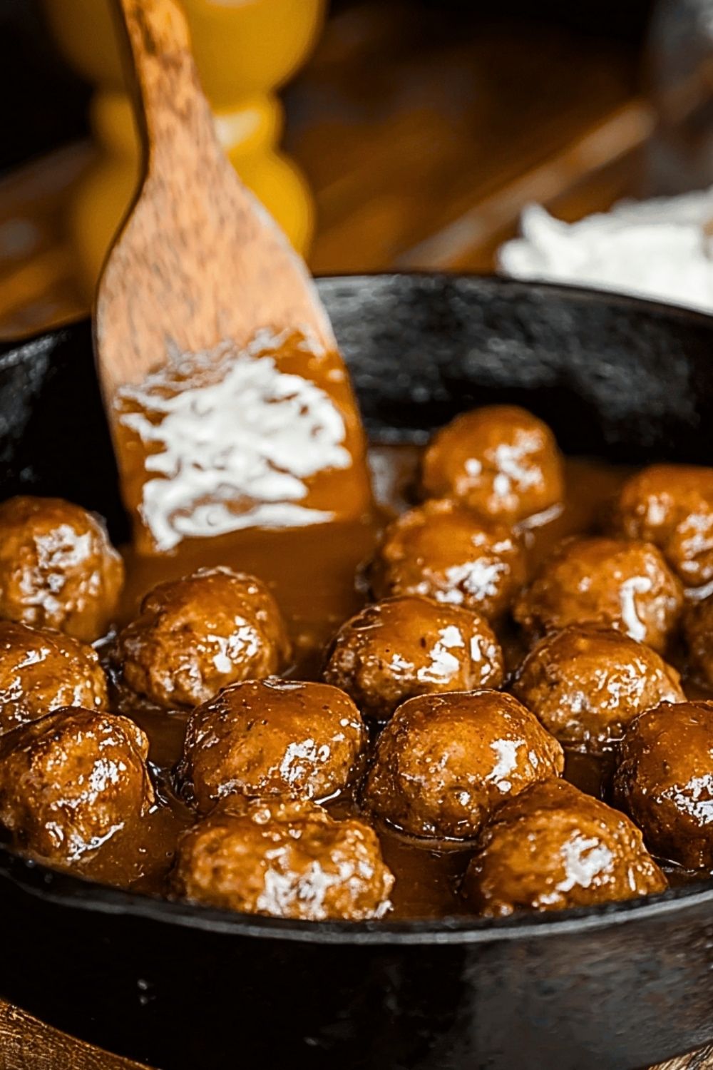 Avoid adding too much liquid at the start. The meatballs release moisture as they cook, which can thin out the gravy if you’re not careful.