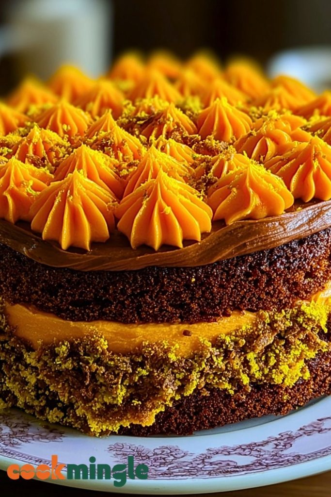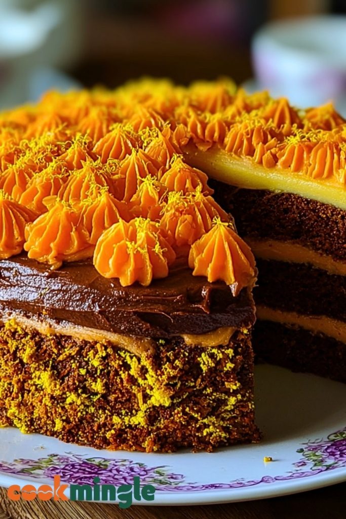 This cake is as much a feast for the eyes as it is for the palate. The vivid orange color of the frosting, naturally tinted by the carrots, contrasts beautifully with the dark, chocolate-kissed sponge. Each bite offers a creamy, tender texture with just enough sweetness to make it feel indulgent without being overpowering. Whether you’re looking to impress guests at a party or treat yourself to a new dessert experience, this cake delivers.