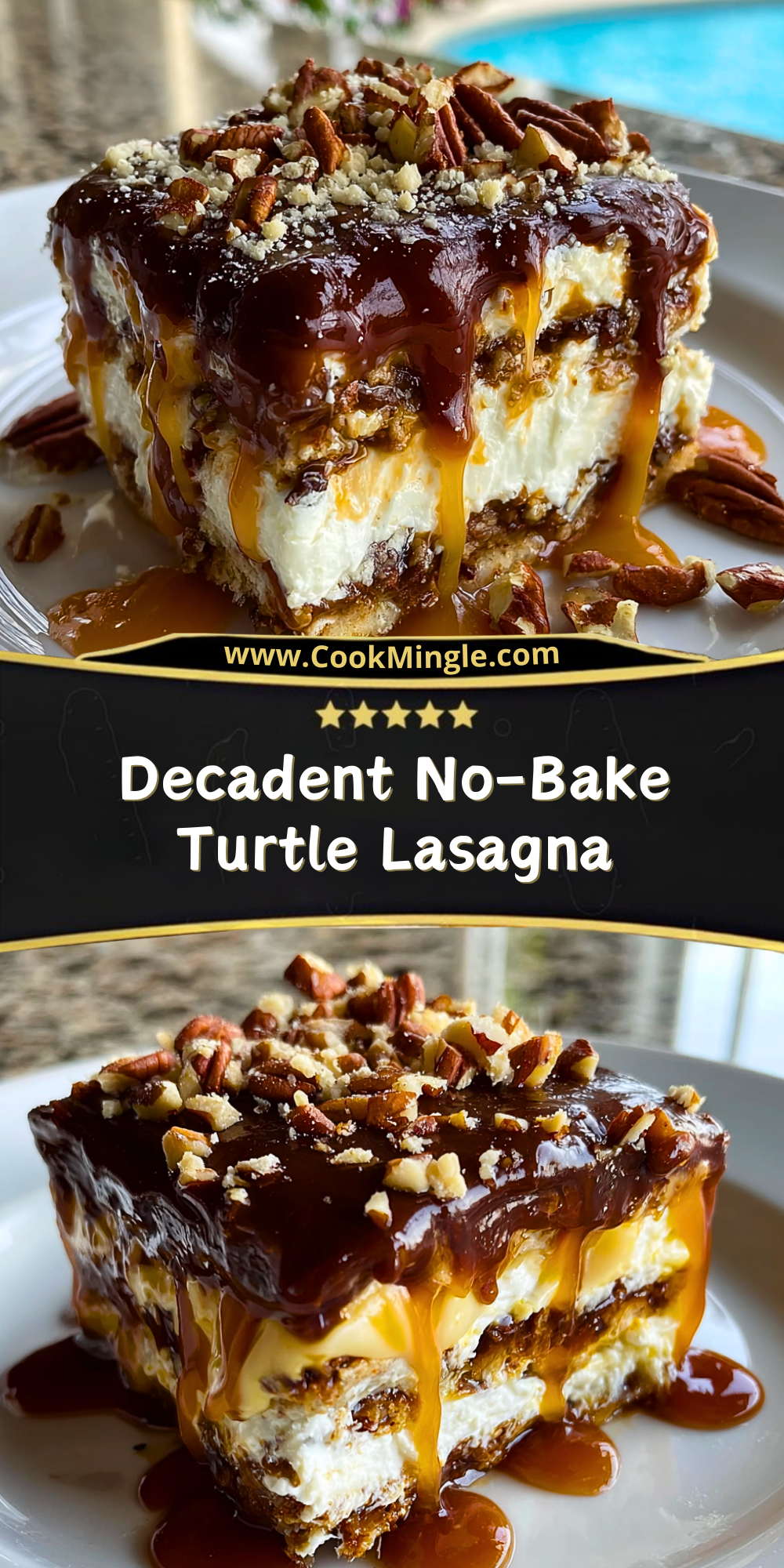 Looking for the ultimate *easy dessert idea* that’s indulgent, gorgeous, and guaranteed to impress? This **Decadent No-Bake Turtle Lasagna** is a no-oven-required, layered masterpiece inspired by turtle candies—rich chocolate, buttery caramel, fluffy whipped layers, and crunchy pecans. It’s the perfect treat for when you want a *quick no-bake dessert*, something for your *holiday potluck*, or just a delicious *food idea* to share with friends and family. If you love *easy recipes* that deliver bold flavors with minimal effort, this *dessert lasagna* is for you.