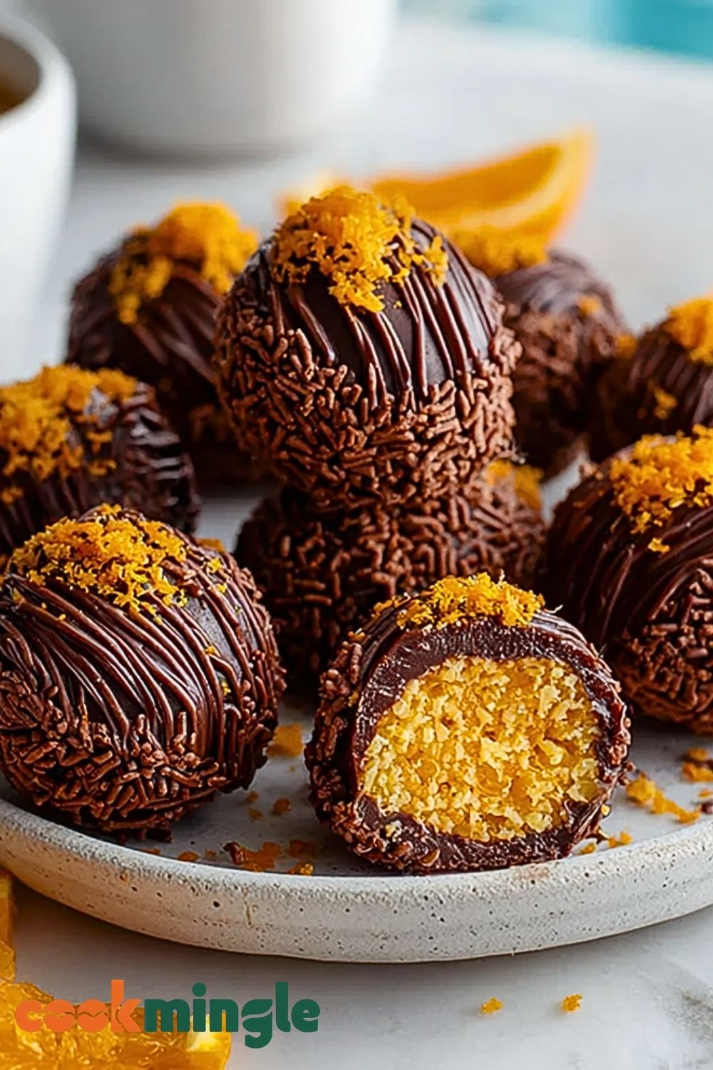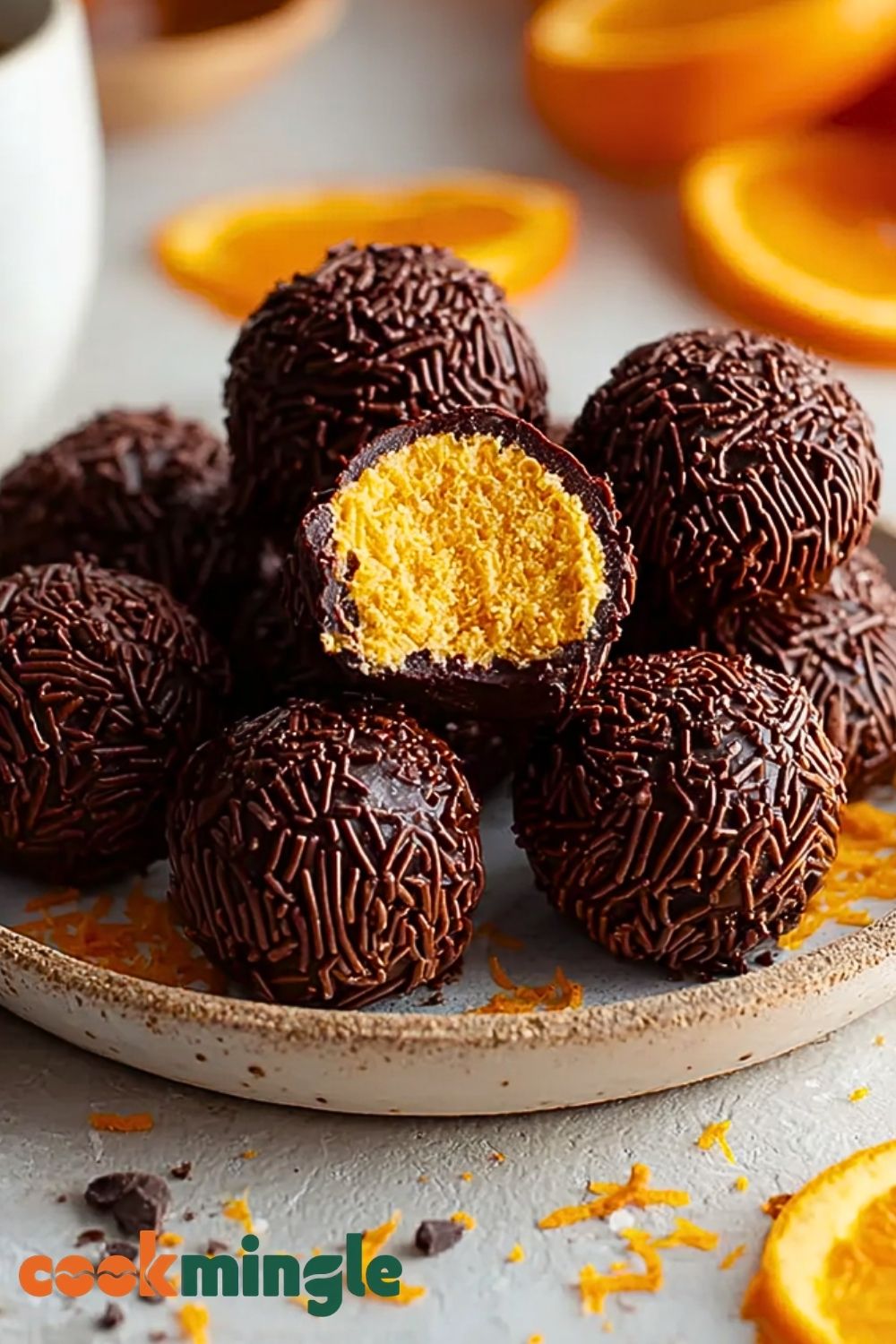 Before the chocolate sets completely, roll or sprinkle each truffle with chocolate sprinkles. This not only adds texture but also gives them that signature look. Optionally, garnish the tops with a little extra orange zest for added color and aroma.