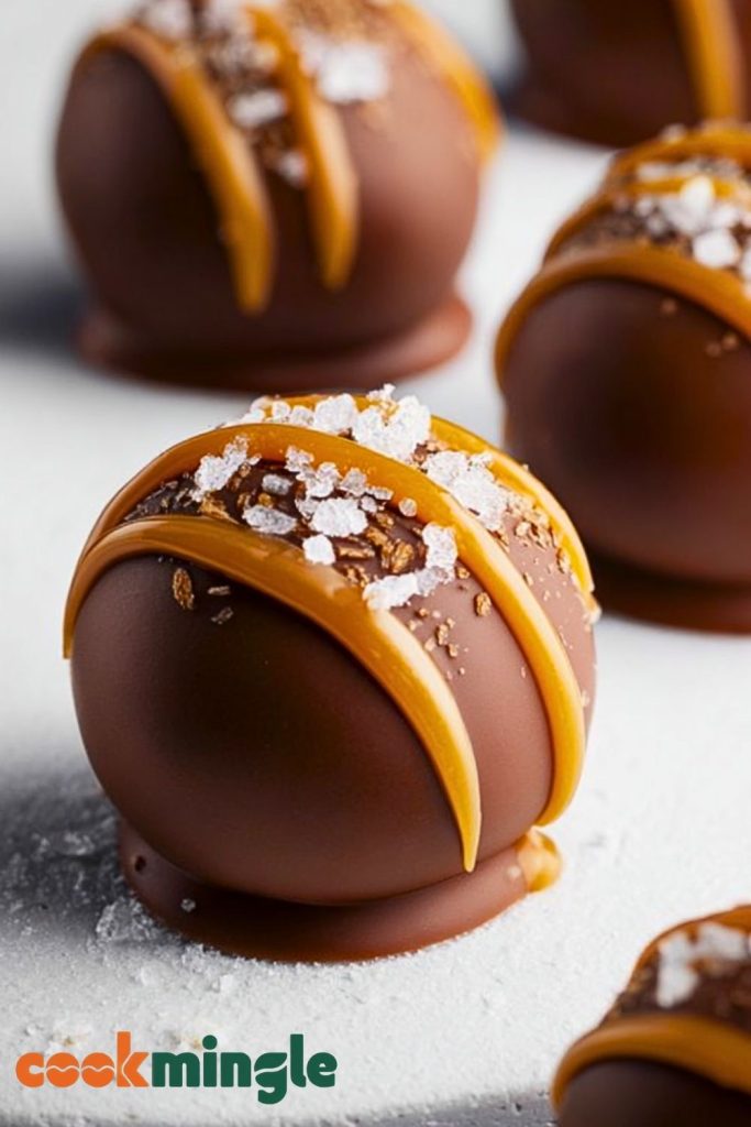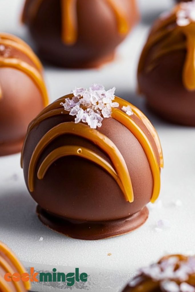 Use a piping bag for the caramel drizzle, sprinkle salt while it’s still warm, and place the truffles in mini cupcake liners for a polished presentation.