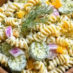 Keywords: easy recipe, dill pickle pasta salad, pasta salad, BBQ side, summer side dish, picnic food ideas, quick lunch, dinner ideas, healthy snack