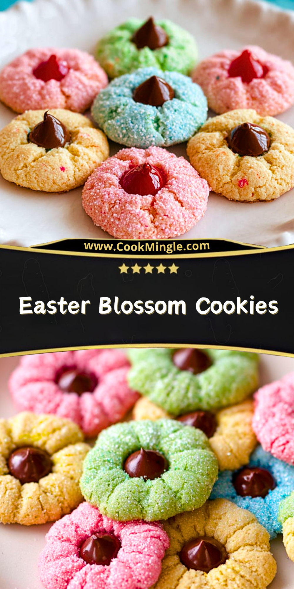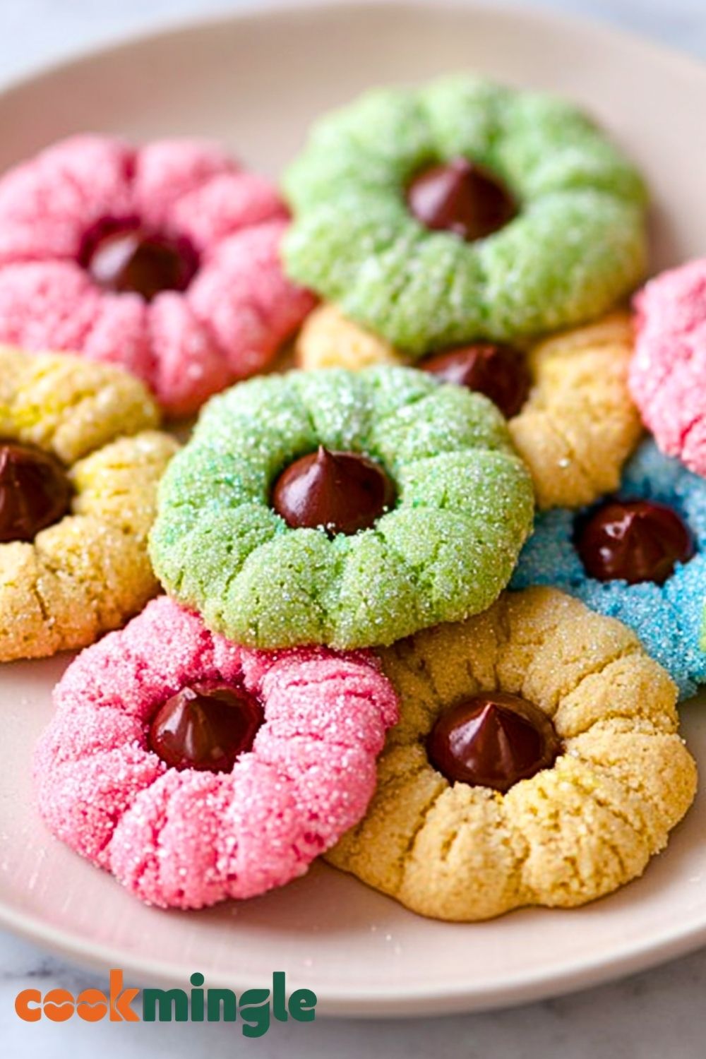 Bright, colorful, and irresistibly soft, these Easter Blossom Cookies are the perfect easy dessert for spring celebrations. With their pastel hues, sugary coating, and classic chocolate kiss center, they make a fun baking project and a beautiful addition to any dessert table. Whether you’re looking for quick baking ideas, festive treats, or simple homemade cookies, this easy recipe delivers both flavor and charm in every bite.