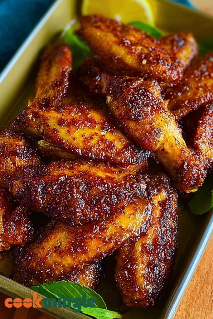 Transfer the wings to a serving platter and garnish with fresh parsley or lemon wedges if desired. Serve immediately while hot and crispy.