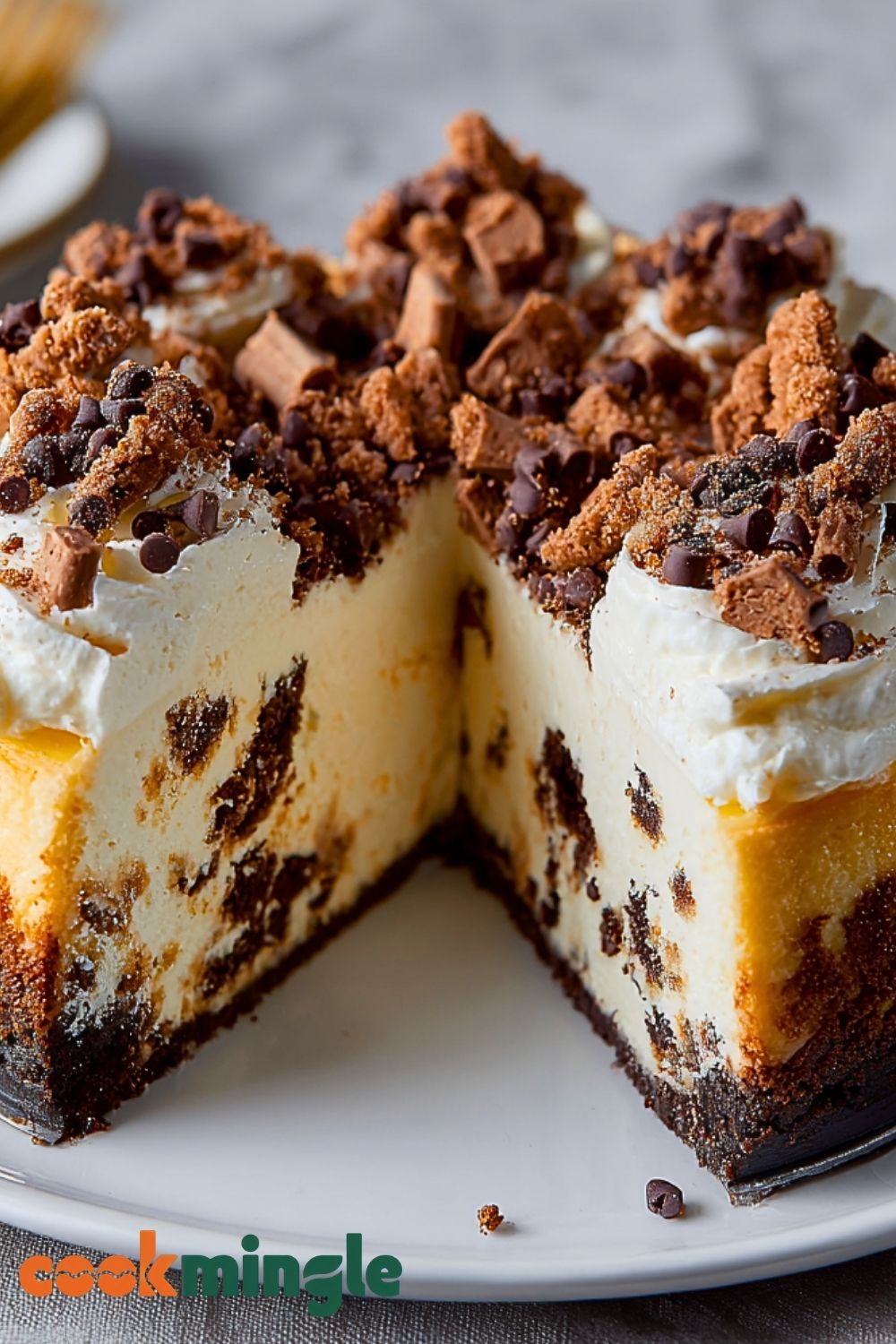 Bring all dairy ingredients—ricotta, cream cheese, and mascarpone—to room temperature before mixing to ensure a smoother batter. Avoid overmixing the filling once the eggs are added, as that can cause the cheesecake to crack. Gently fold in the mini chocolate chips to prevent them from sinking. Always pre-bake the crust for a few minutes to give it structure before pouring in the filling. And once the cheesecake is baked, let it cool gradually in the oven with the door slightly ajar to avoid sudden temperature changes that can cause cracking.