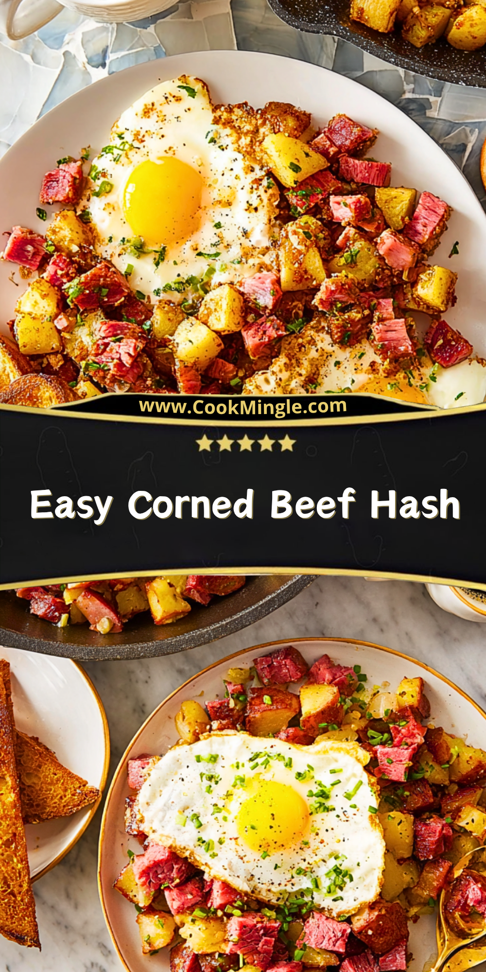 Serve the corned beef hash hot, topped with a fried egg if desired. Pair it with toasted bread for a complete and satisfying meal.