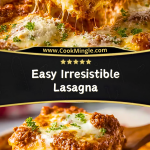 This Easy Irresistible Lasagna is the ultimate comfort food recipe that combines hearty layers of savory meat sauce, creamy ricotta, and gooey melted mozzarella. It’s simple to make, yet bold in flavor, making it a perfect pick for easy dinners, family gatherings, or meal prep. Whether you’re looking for a quick dinner idea, a satisfying meal to freeze for later, or a go-to classic that never fails, this lasagna checks every box. It’s rich, cheesy, filling, and full of crowd-pleasing flavor—one of the best food ideas for dinner nights.