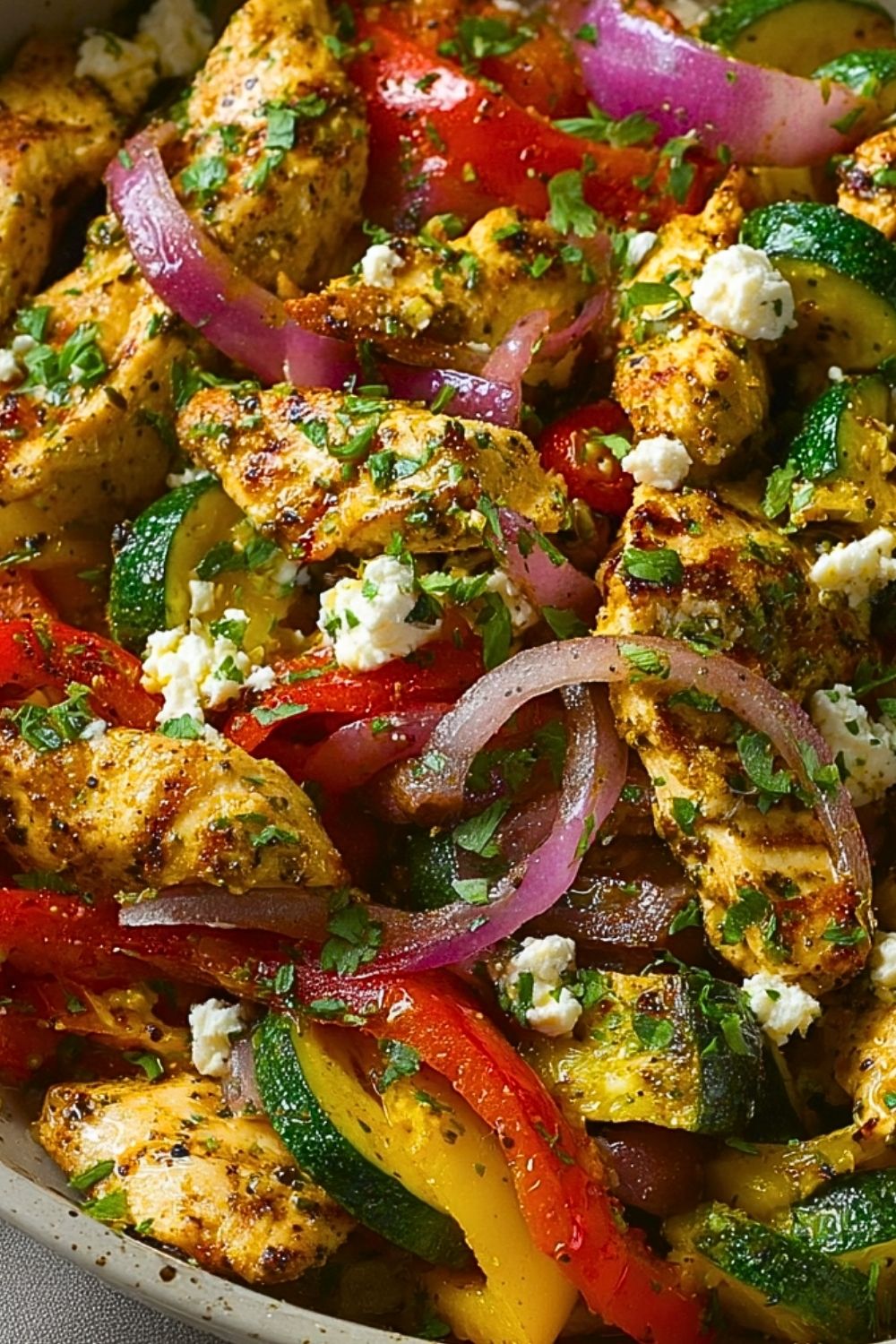 Start by prepping all your ingredients before heating the skillet—this makes the stir fry process seamless and prevents overcooking. Slice your vegetables uniformly so they cook evenly and still retain a bit of bite. Let the chicken sit with the seasoning for a few minutes to absorb the flavors. Cook in batches if necessary to avoid overcrowding the pan, which can cause steaming instead of searing. Lastly, add the feta and fresh herbs right at the end to preserve their brightness and texture.