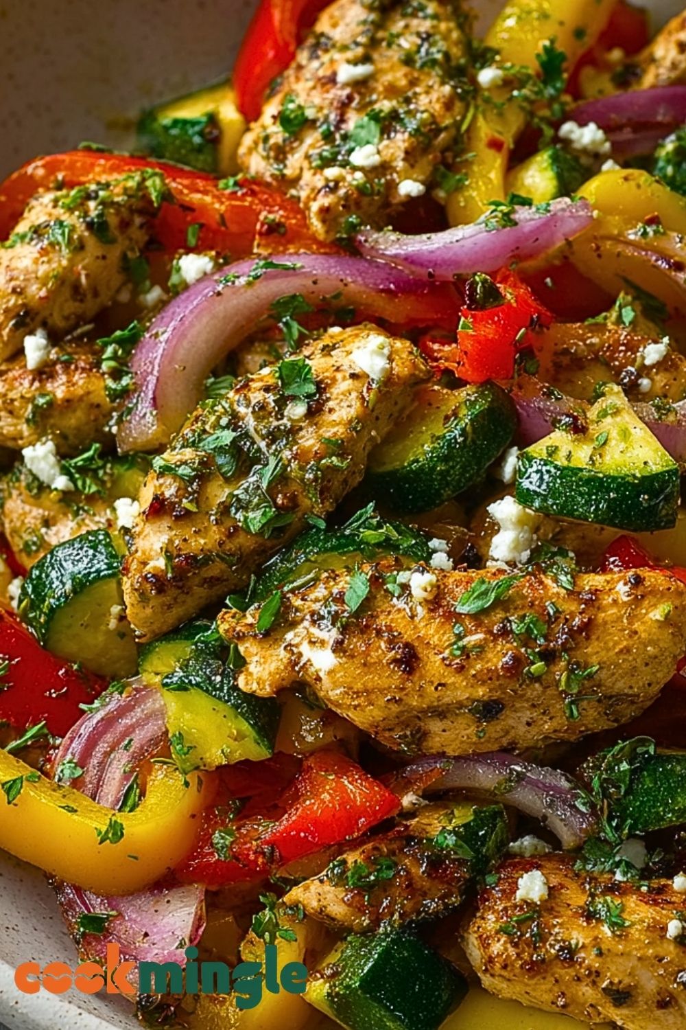 This Easy Mediterranean Chicken Stir Fry is a vibrant, flavorful dish that brings the sunny tastes of the Mediterranean straight to your plate. Tender chunks of chicken breast are tossed with colorful bell peppers, zucchini, red onion, and a medley of herbs, then lightly sautéed to create a quick and nourishing meal that’s packed with freshness. Finished with a sprinkle of crumbled feta and chopped parsley, each bite is a savory explosion of textures and balanced flavors.