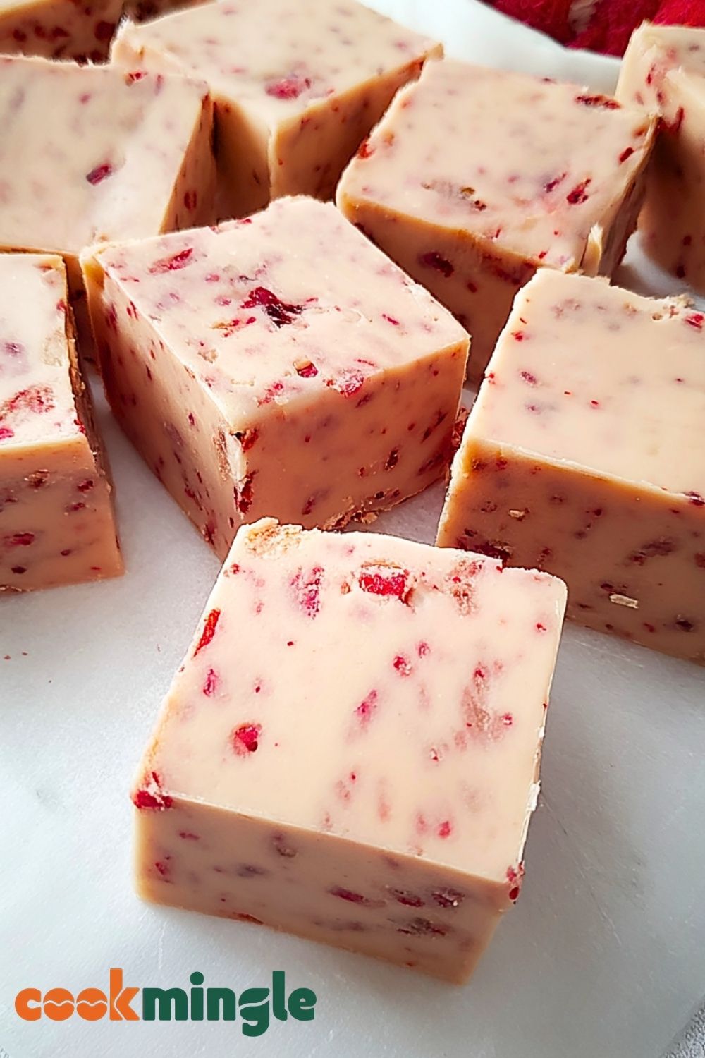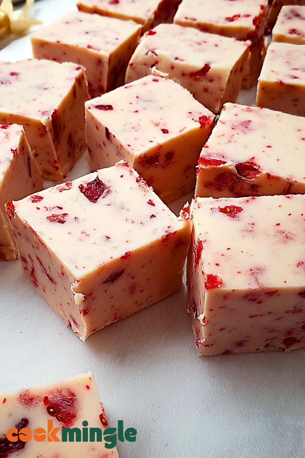 For the best results, make sure to melt the ingredients slowly over low heat to avoid grainy texture. Stir continuously to ensure everything blends smoothly and evenly. If you’re adding dried strawberries or mix-ins, chop them into small, even pieces so they distribute well throughout the fudge. Allow enough chilling time for the fudge to fully set before cutting, as this ensures clean edges and the perfect firm-yet-creamy bite.