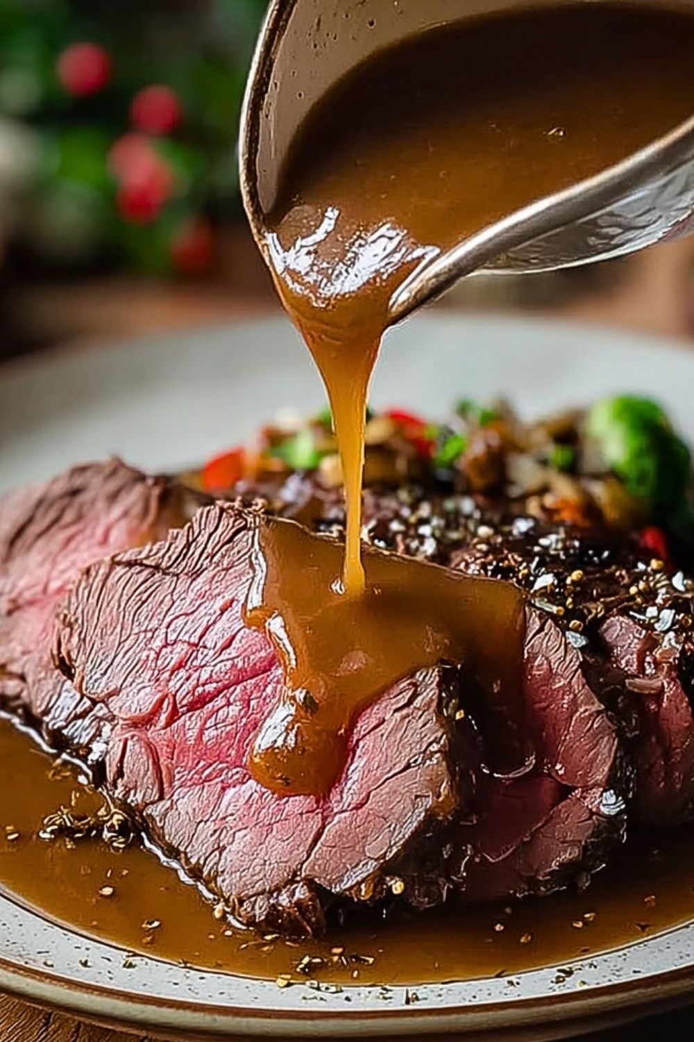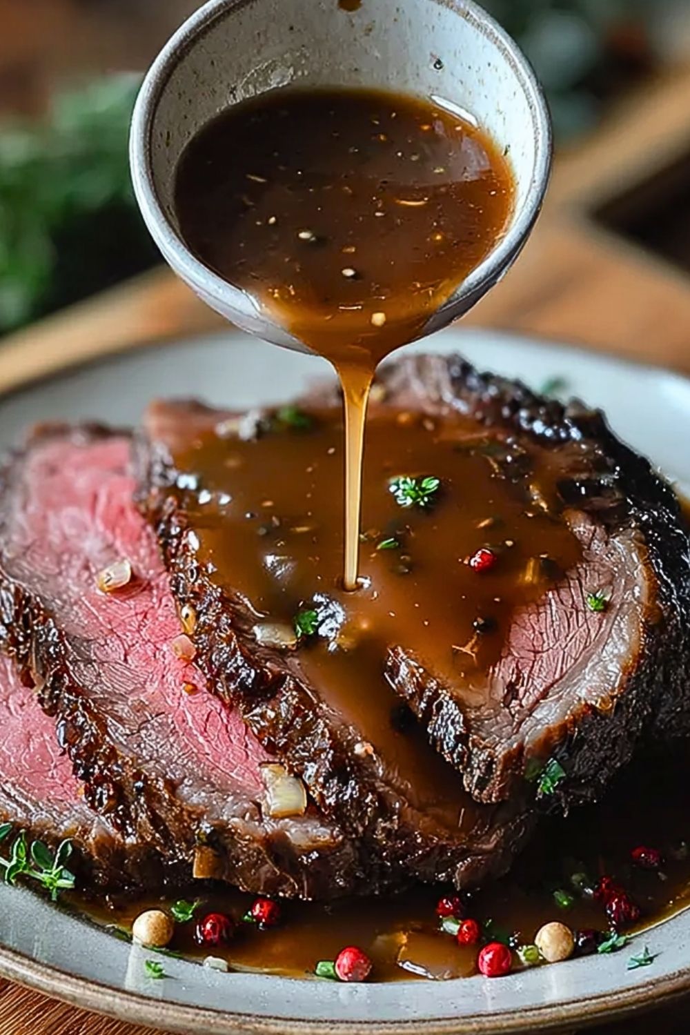 A perfectly cooked prime rib is already a showstopper, but when paired with a rich, savory au jus sauce, it transforms into something truly unforgettable. The deep, beefy flavors of the drippings blend beautifully with herbs and aromatics, creating a silky sauce that enhances every bite without overpowering the meat.