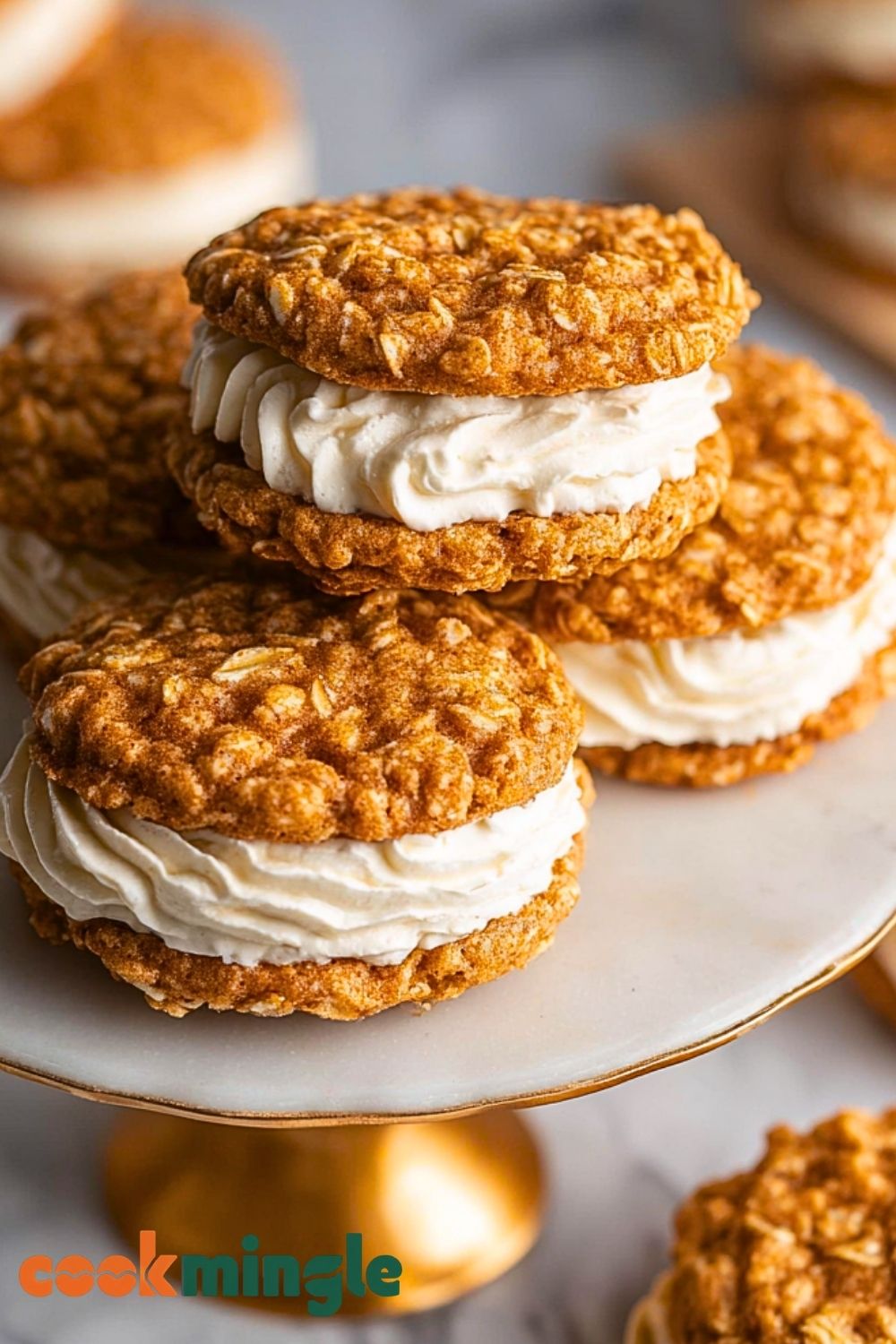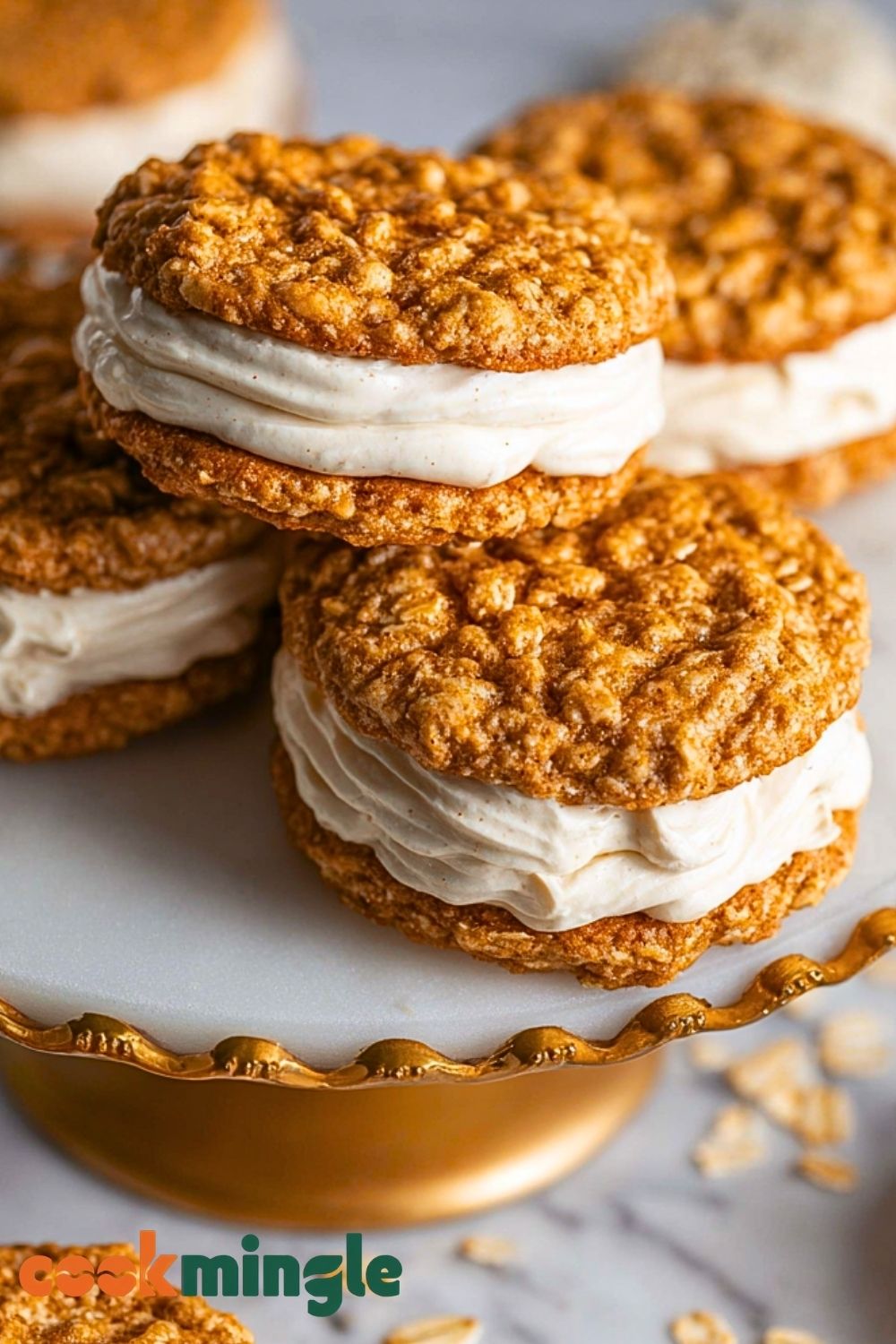 I love making these during the holidays, but they’re honestly good enough to enjoy year-round if you’re a fan of cozy flavors. The cinnamon, nutmeg, and hint of rum extract in the filling are what set them apart, creating a spiced eggnog flavor that balances beautifully with the hearty oats. They look impressive stacked on a cake stand, but they come together without too much fuss, which makes them perfect for both casual baking days and festive occasions.