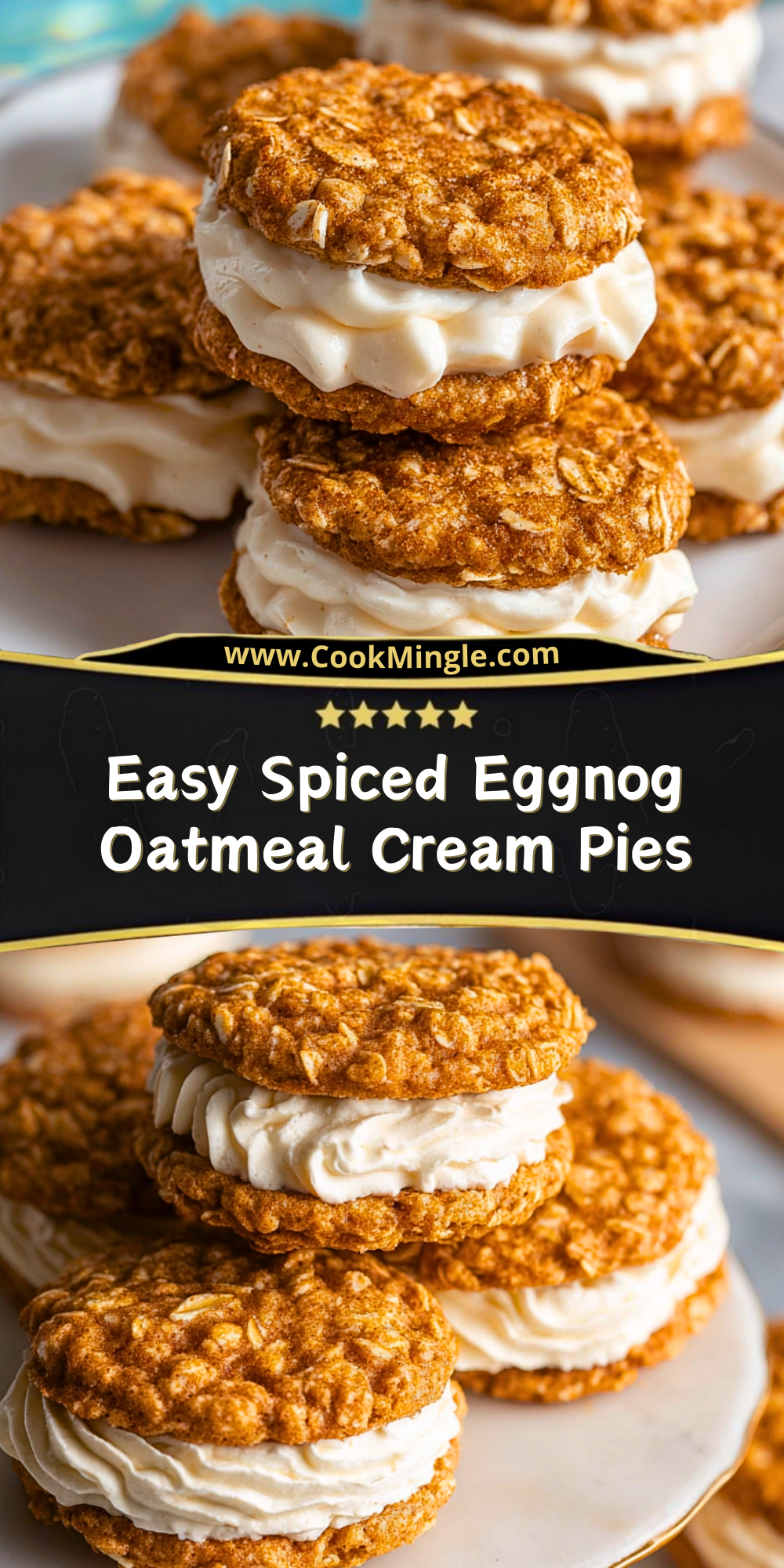 Soft, chewy, warmly spiced, and filled with rich eggnog buttercream, these Easy Spiced Eggnog Oatmeal Cream Pies are a holiday must-bake! Perfect for cookie swaps, dessert platters, or festive snacking, these nostalgic treats combine old-fashioned oats with seasonal spices and a creamy, eggnog-flavored filling. Whether you’re looking for a quick holiday dessert, easy recipe to impress guests, or festive baking idea, these oatmeal cream pies check every box for cozy comfort food.