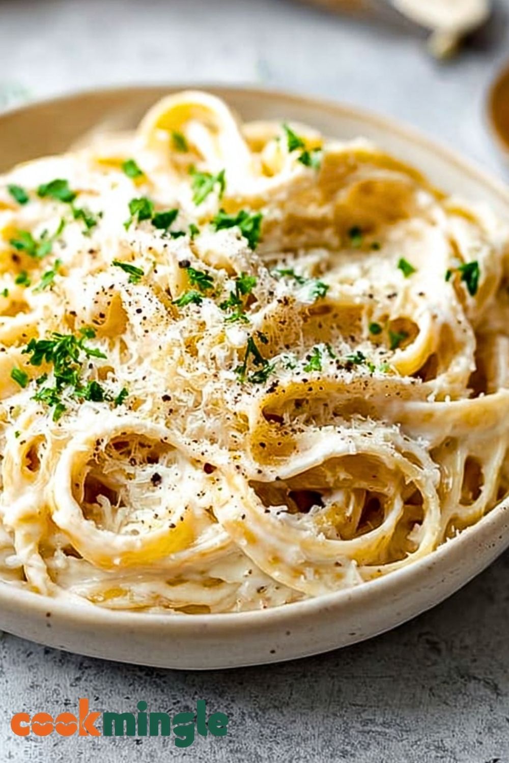 For the best results, always use freshly grated Parmesan cheese — the pre-shredded or powdered kinds don’t melt as well and can cause the sauce to turn grainy. Keep the heat low when adding the cheese to avoid breaking the sauce. A touch of pasta water can help smooth out the sauce if it thickens too much. If you want to add protein, grilled chicken, sautéed shrimp, or crispy bacon are delicious additions.